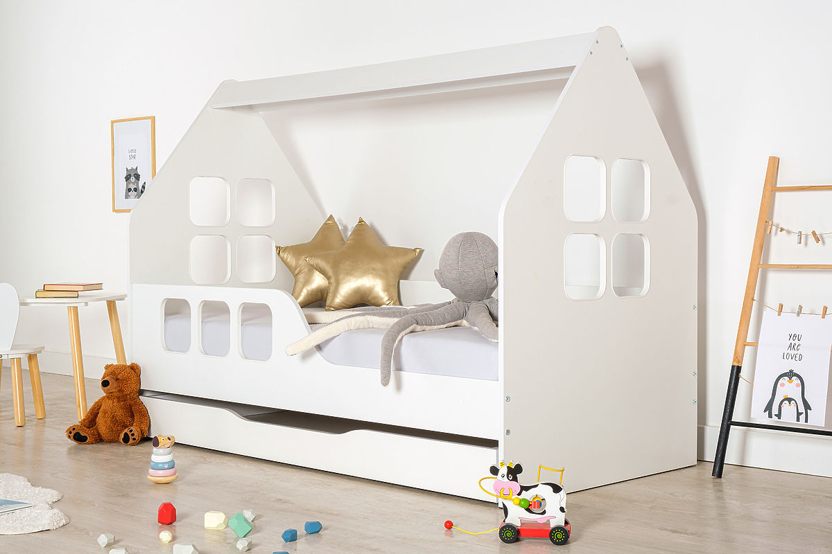Bijela krevet Woody u obliku kućice s prozorima dimenzija 160 x 80 cm. .. više