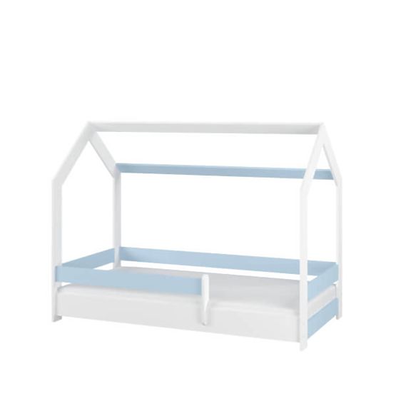 Plavi krevet Sofie s niskom visinom i zaštitnom ogradom za sigurnost vašeg djeteta. .. više