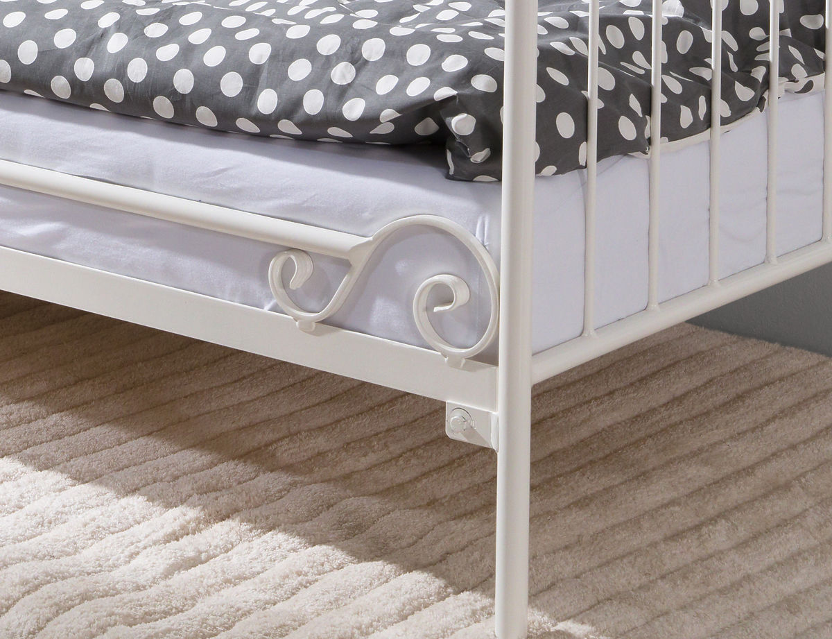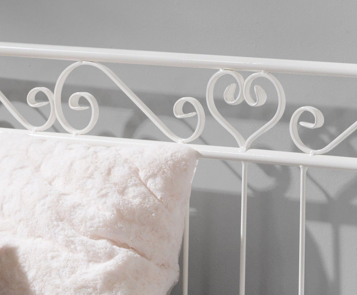 Nádherná ručně dělaná kovová postel do dětského pokoje, vám přinese eleganci a styl. Krásné dekorační prvky, jako je srdce na boku postele nebo kované části typu "S", si zamilujete. Originální tvar postele je možné využít i jako pohovku. Kulaté zakončení postele je velmi praktické a bezpečné. Pohovka je ideálním doplňkem do dětského pokoje nebo pro terasu či zahradu.