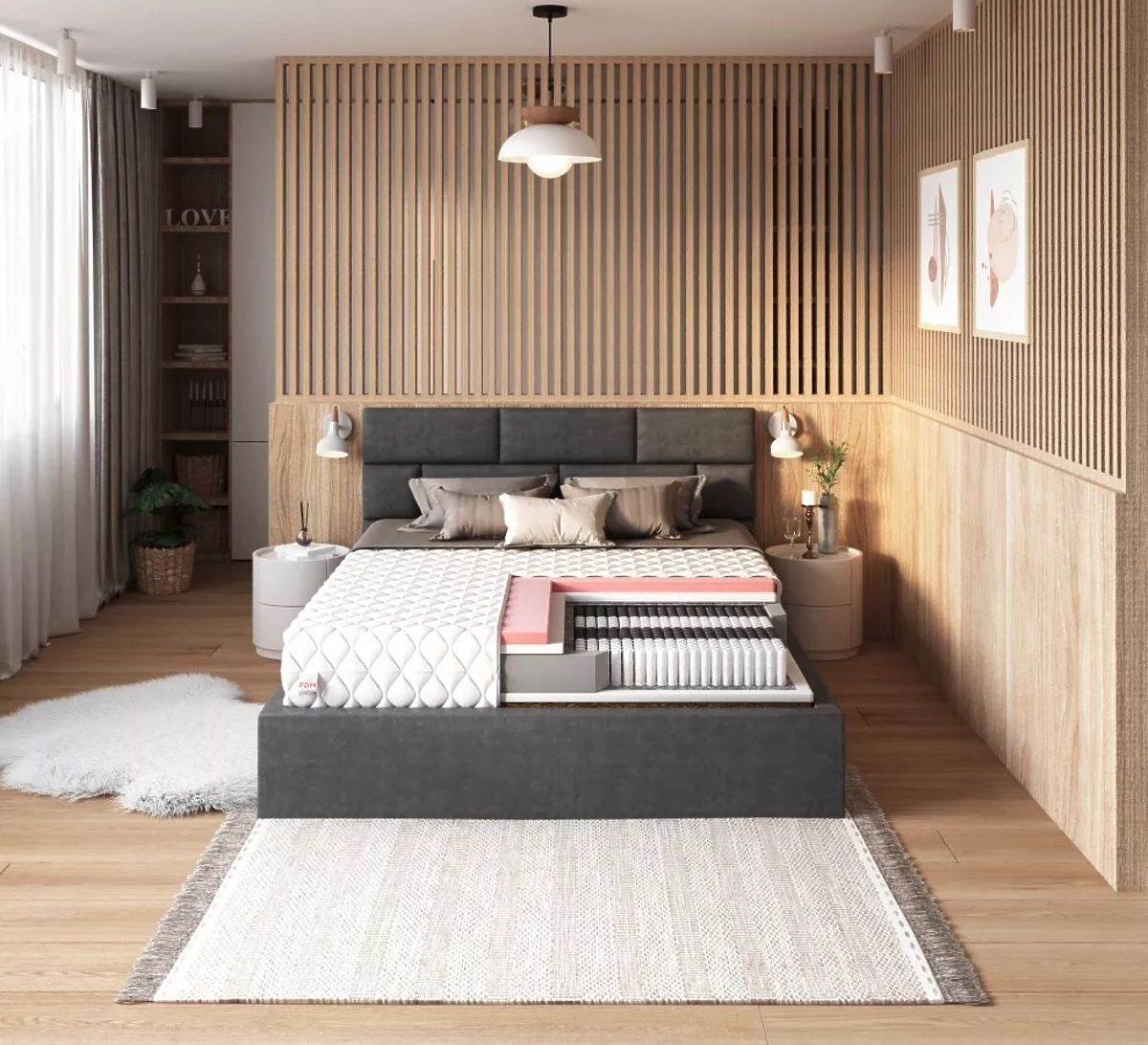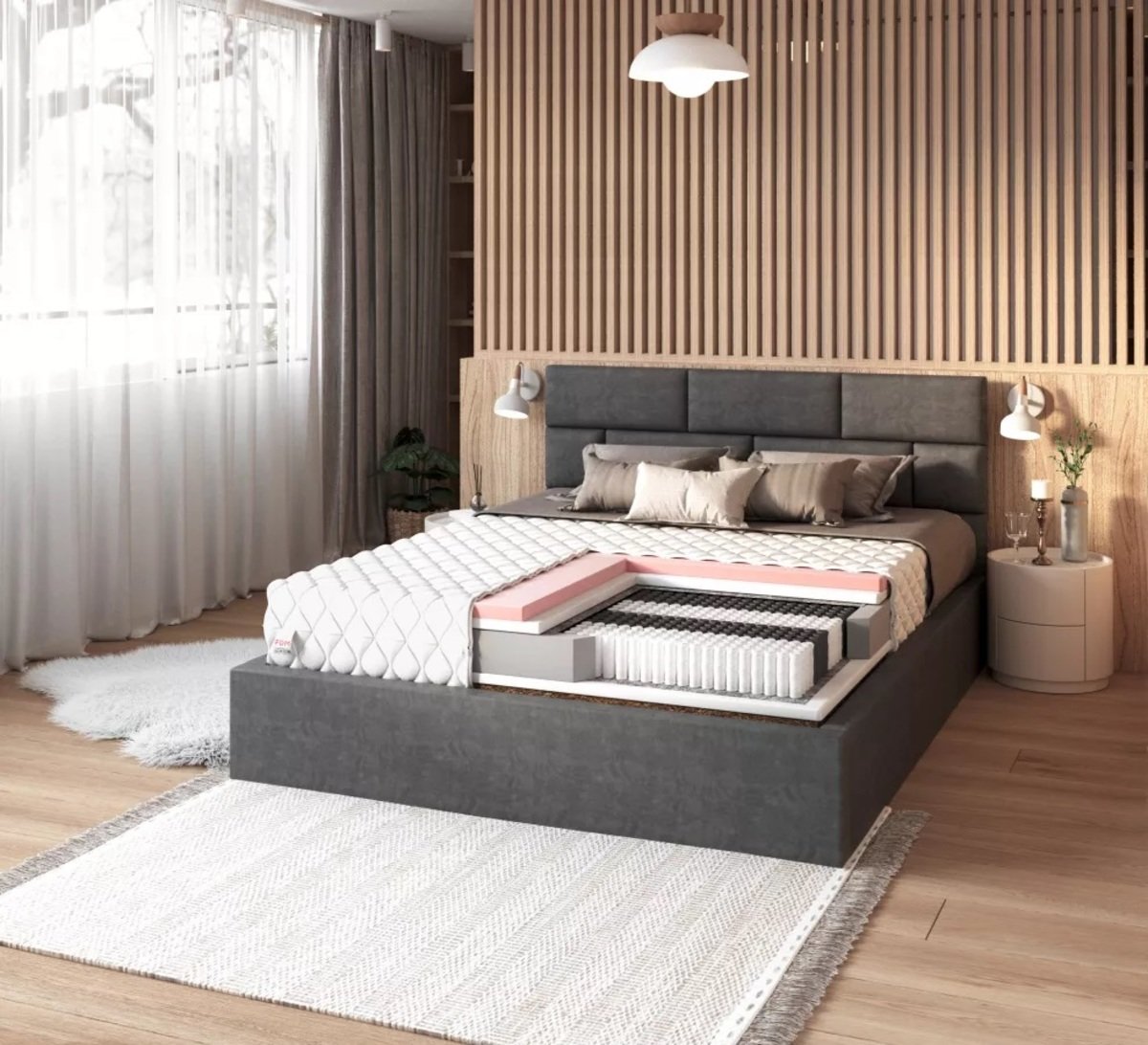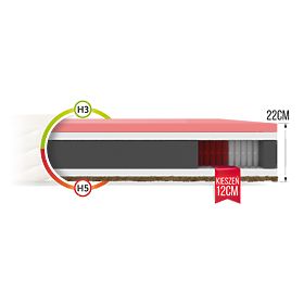 Zahvaljujući obostranoj madraci IVREA visine 22 cm, postići ćete uravnotežen i savršen san. Madrac se sastoji od nekoliko različitih slojeva, čija je osnova džepičaste opruge sa 7 zona potpore tijelu. Zahvaljujući tome, svaki dio vašeg tijela bit će u potpunoj udobnosti tijekom spavanja. Osim toga, smanjuje nelagodu uzrokovanu pokretima druge osobe i osigurava neprekinut dubok san.