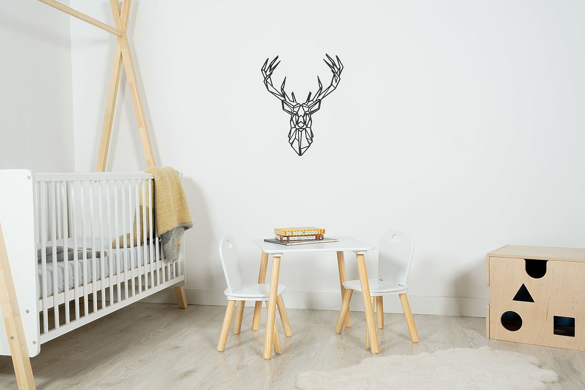 Drvena geometrijska slika u obliku jelena 2. Viseći ukras od šperploče prikladan je za dječju sobu u skandinavskom stilu.