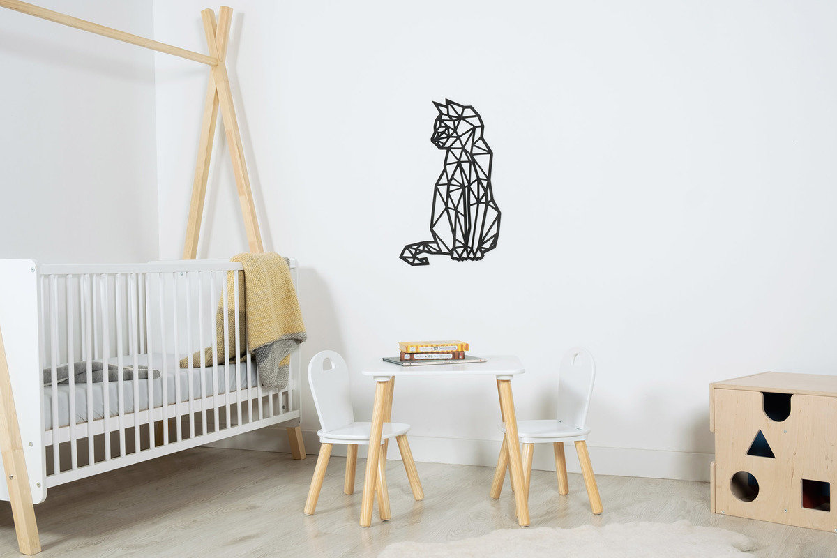 Drveni geometrijski lik u obliku mačke. Viseći ukras od šperploče prikladan je za dječju sobu u skandinavskom stilu.