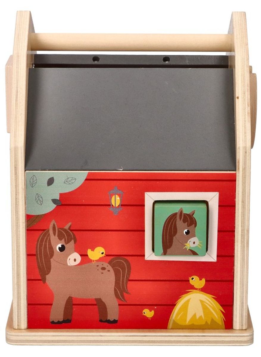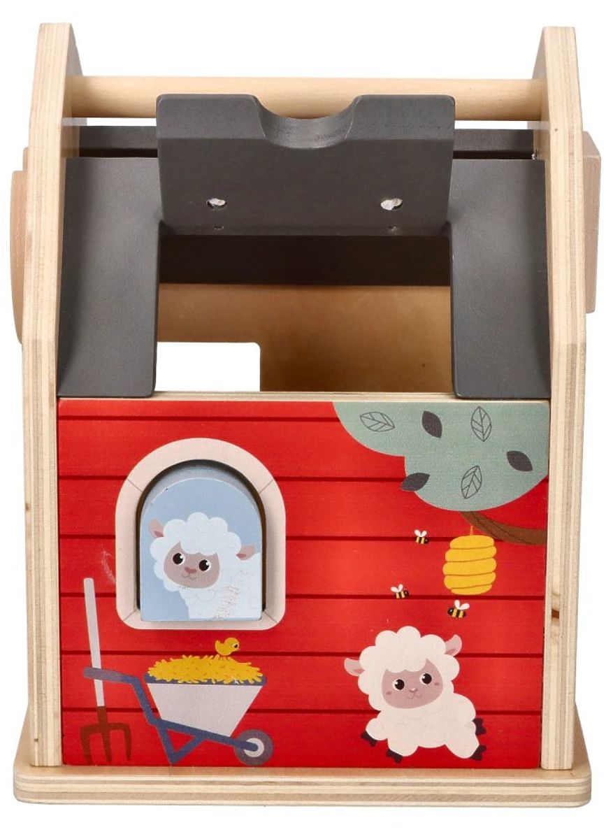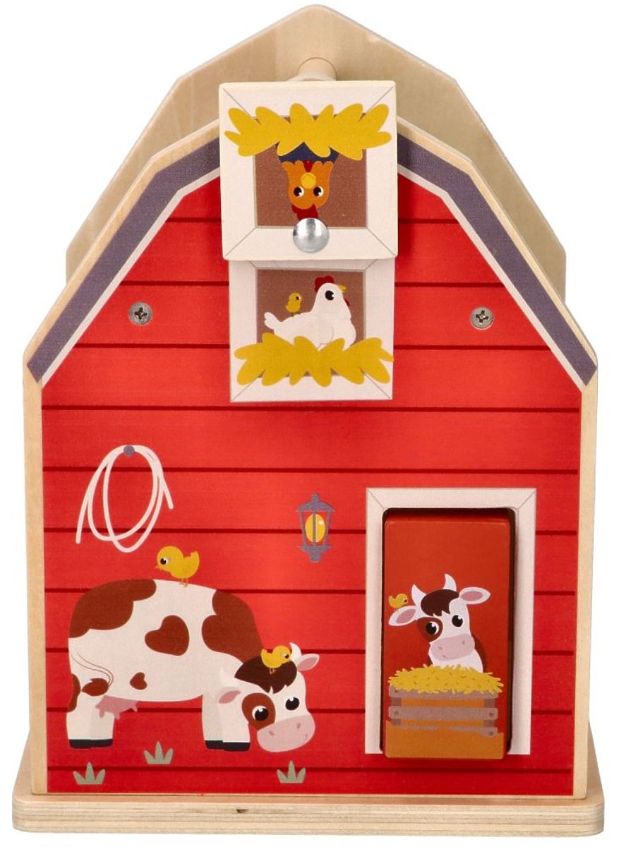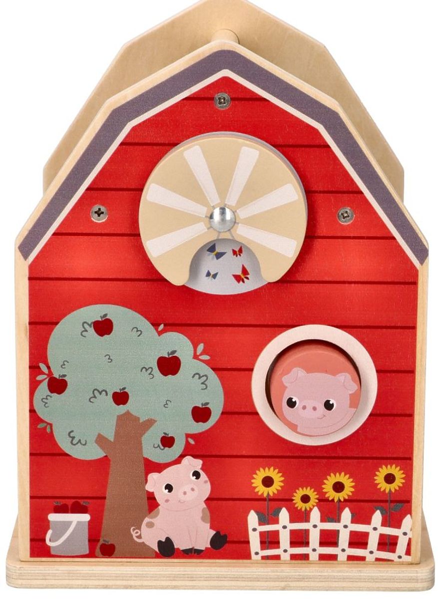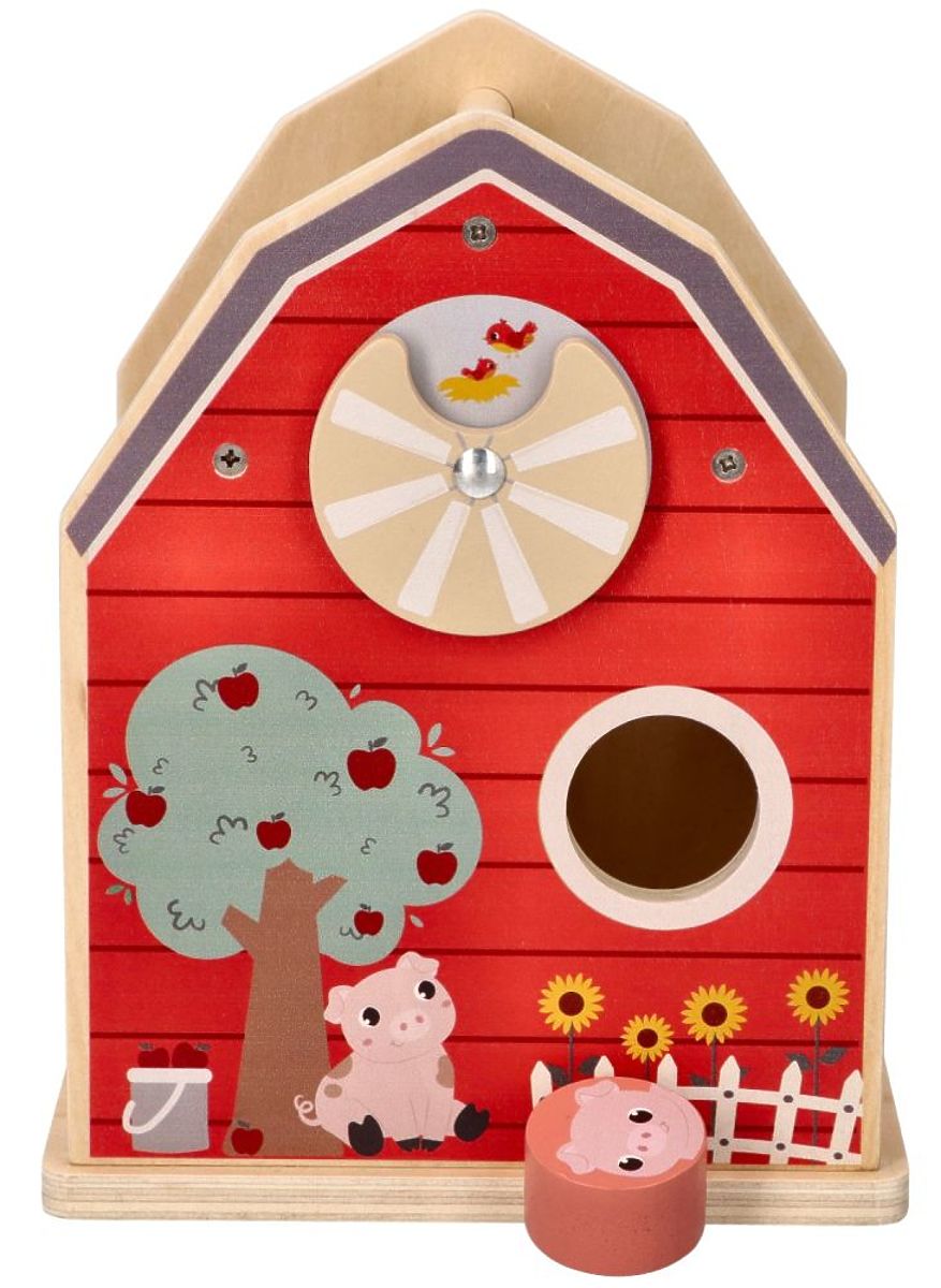 S jedne strane, djeca vježbaju koordinaciju ruka-oko pokušavajući ubaciti kocku u otvor, a s druge strane, razvijaju razmišljanje i sposobnosti opažanja. Zahvaljujući različitim oblicima i bojama kocki, uče ih razlikovati i stječu znanje o okolnom svijetu i razlikama među elementima. Ovdje također upoznaju životinje koje žive na ovoj prekrasnoj farmi.