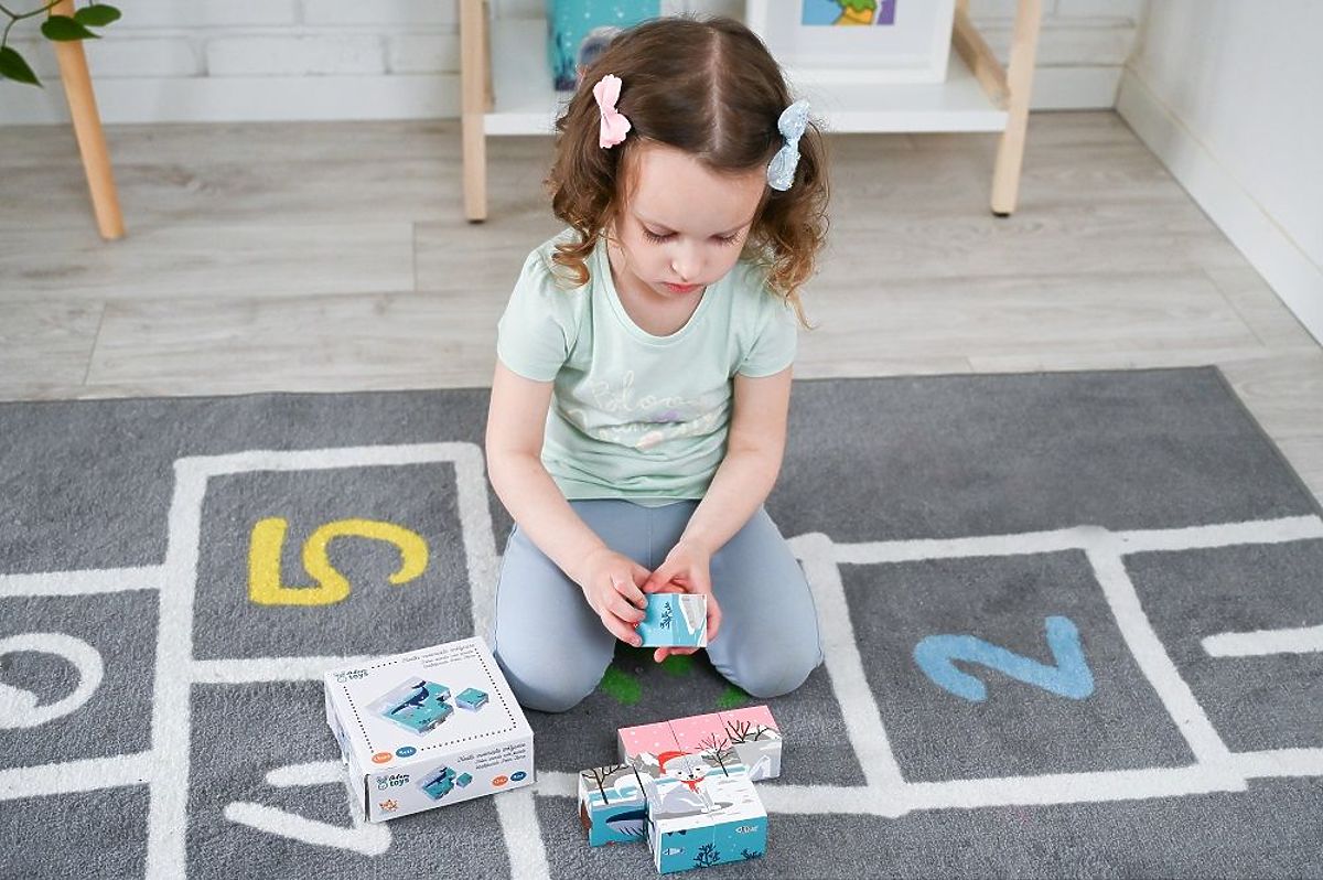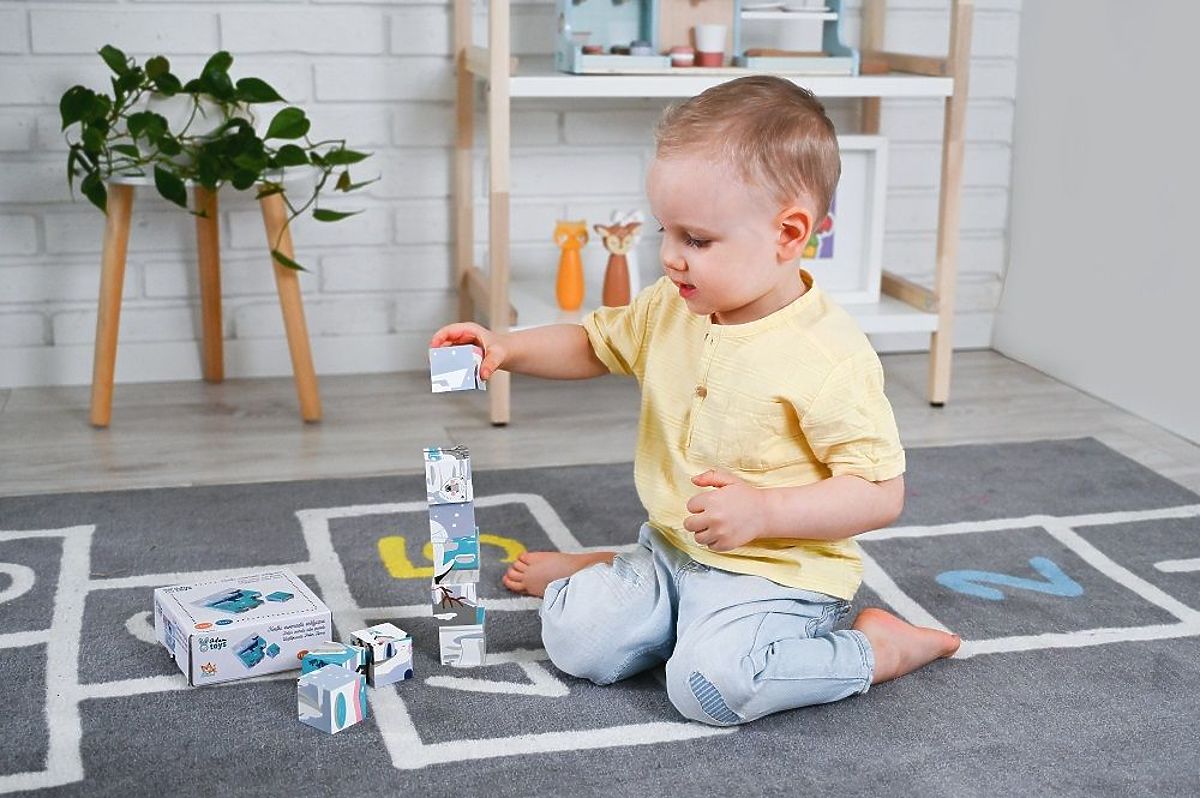 Zadatak djeteta je složiti sliku jedne od gore navedenih životinja od devet kockastih kocaka. Dijete razvija sposobnosti opažanja i sposobnost asocijacije. Osim toga, igračka potiče razvoj logičkog razmišljanja i asocijacije. Dijete mora prilagoditi elemente slagalice kako bi stvorilo sliku, što u početku neće biti nimalo jednostavno. Nakon slaganja, zadovoljstvo je zajamčeno, a može se složiti čak 6 slika. To je prava zabava!