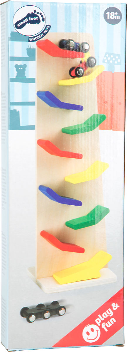 Mali ljubitelji automobila zaista će uživati s ovom drvenom kaskadnom kulom, jer pruža zabavu za oči i uši. Nakon puštanja, mali zglobni automobili spuštaju se niz rampe. Drveni trkači jure stazom, tako da djeca doživljavaju puno zabave sa svakim spuštanjem. Glavne značajke: razvija finu motoriku, robusna i izdržljiva drvena izrada, igračka prikladna i za vrtiće