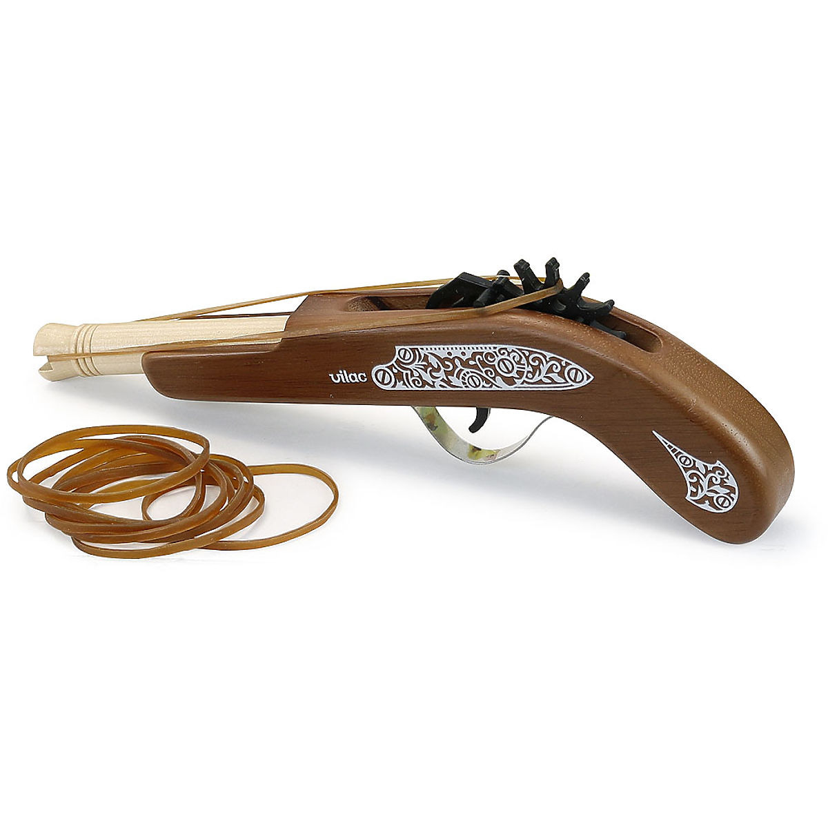 Drveni gusarski pištolj s gumicama za gađanje ciljeva. .. više