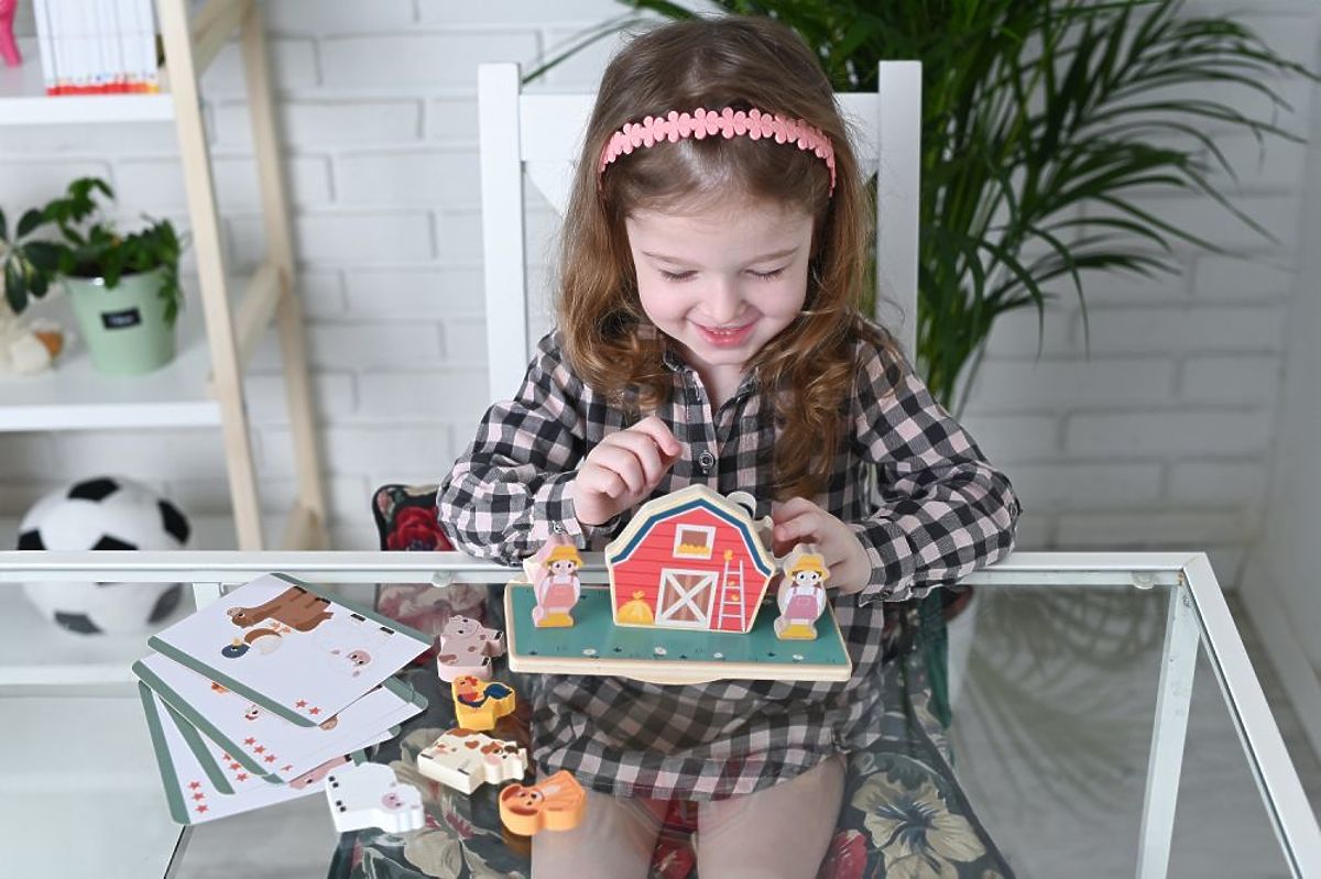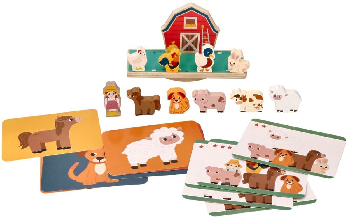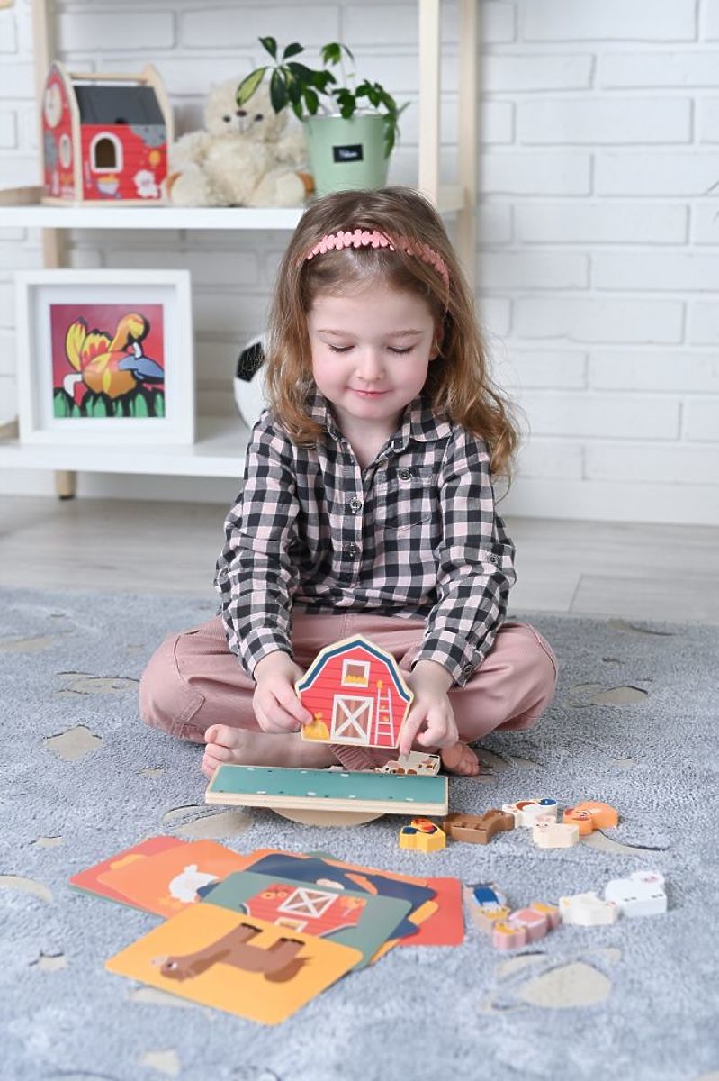 Slatke životinje s farme osigurat će vašem djetetu mnogo zabave, ali će ga također naučiti mnogim vrijednim vještinama! Prekrasna drvena farma s veselim životinjama je vještinska igra i slagalica u jednom.