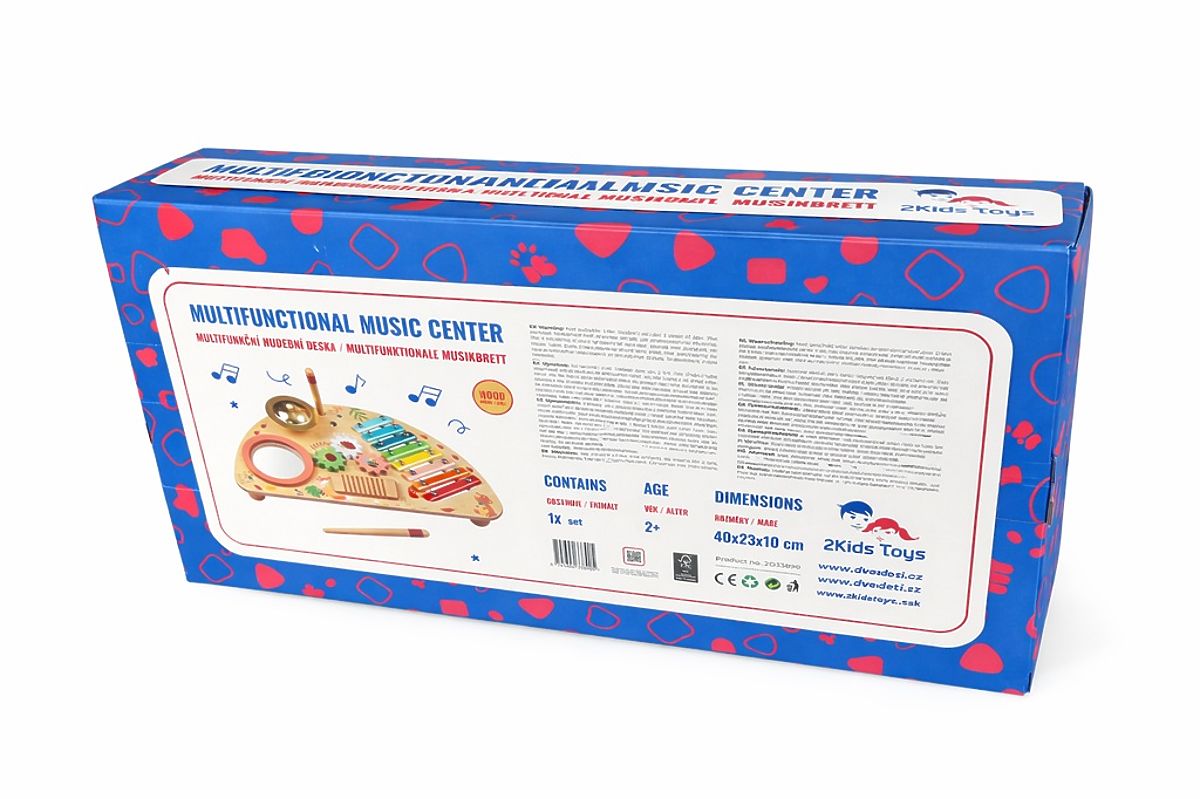 Podržite interes djece za glazbu! Višenamjenska glazbena ploča potiče djecu da sviraju glazbene instrumente i otkrivaju nove zvukove. Sadrži bubanj, ksilofon s 2 palice i druge zvučne igračke. Dopunjena zupčanicima i simpatičnim ilustracijama s motivima prirode i životinja, zasigurno će postati omiljena glazbena igračka vašeg djeteta. Idealna je za senzornu igru i otkrivanje glazbe, razvija kreativnost, slušnu percepciju i koordinaciju ruka-oko. Istovremeno pomaže djeci da usvoje osjećaj za ritam i pravilno tempiranje. Izrađena je od drva s FSC® certifikatom. Nije glazbeni instrument, već samo igračka. Glavne značajke: uvod u svijet zvukova i ritma, razvija spretnost i vještine hvatanja, izrađena od drva s FSC® certifikatom, prikladna za djecu od 2 godine. Marka i certifikat FSC® (Forest Stewardship Council) jamče da drvo od kojeg je proizvod izrađen nije ilegalno posječeno i dolazi iz šuma kojima se upravlja na održiv ili prirodi blizak način, u kojem se poštuju strogi ekološki i socijalni zahtjevi. FSC® oznaka na proizvodu znači da svojim kupnjom pomažete zaštiti šume i podržavate održivo, odgovorno ili prirodi blisko gospodarenje, zahvaljujući kojem su naše šume stabilnije, zdravije, imaju prirodni sastav vrsta i bolje odolijevaju negativnim posljedicama klimatskih promjena.