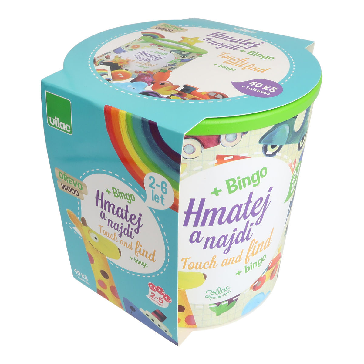 Nenadmašni bestseler Vilac na originalan način pokušava razviti često zanemaren osjet dodira kod djece. Igra se uglavnom sastoji od drvenih figura skrivenih u kanti koja je unutra opremljena vrećicom od mekane tkanine. Nakon što stave ruku u cijev, mlađa djeca imaju zadatak opisati vlastitim riječima koji predmet drže u ruci, na temelju samog osjećaja. Roditelji mogu demonstrirati postupak svojoj djeci na ilustrativnom primjeru. Starija djeca mogu igrati igru u obliku lota ili binga, za ove igre u kompletu su dostupne slikovne kartice pojedinačnih predmeta. Glavne značajke: 21 igraći dio i 20 slikovnih kartica za 2-5 igrača različite varijante igre praktično pakiranje Upute za igru: Dodirni i pronađi: Prvi igrač uzima kartu s hrpe. Zatim moraju posegnuti u vrećicu i opipati drveni komadić koji odgovara slici na kartici. Ako odabere ispravnu figuru, zadržava kartu i na redu je sljedeći igrač, koji počinje ispočetka povlačenjem karte iz hrpe. Ali ako prvi igrač odabere pogrešnu pločicu, mora predati svoju kartu sljedećem igraču, koji mora pokušati pronaći ispravnu pločicu. Nakon svake runde, dijelovi se vraćaju u vrećicu. Kada na hrpi više ne ostane nijedna karta, određuje se pobjednik. Pobjeđuje igrač s najviše karata. Pažnja! Ako jedan od igrača slučajno izvuče figuru u obliku bombe, mora vratiti sve svoje karte na hrpu! Možete prilagoditi pravila kako smatrate prikladnim kako biste pomogli djeci da se bolje upoznaju s pipanjem i pronalaženjem predmeta: 1 – Započnite s malom količinom drvenih komada. 2 – Dopustite djeci da pogledaju u torbu. 3 – Onda opet malo otežajte igru, ne dopustite im da gledaju u torbu. 4 – Dodajte još komada u torbu. 5 – Na kraju, kada se djeca naviknu na igru, igrajte prema tradicionalnim pravilima. BINGO varijanta: Postavite 4 karte u kvadrat i napravite jedno ili više polja za igru za svakog igrača. Jedan od igrača ili roditelj vadi figuru iz vrećice i proziva je. Igrač koji ima kartu koja odgovara ovoj pozvanoj figuri uzima je i stavlja na svoju kartu. Pobjeđuje onaj igrač koji prvi popuni svoje polje za igru! Dokumentacija: Vodič za igru Touch and Find (CZ) Vodič za igru Touch and Find (SK)