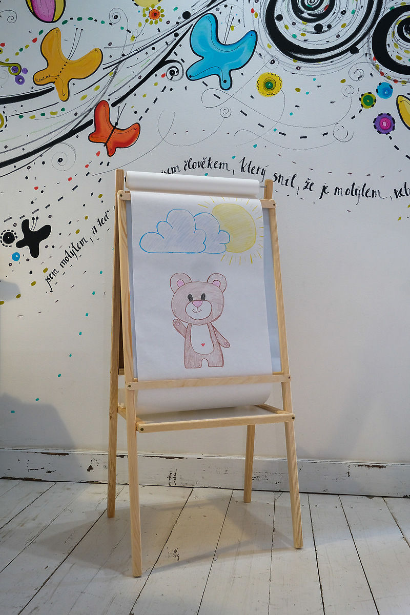 krede u boji, spužvica, crni flomaster i izmjenjiva rola papira (20 m).