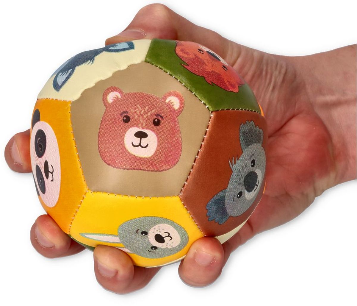 Loptica s divljim životinjama u nježnim nijansama bež i smeđe boje prijedlog je jednostavne, klasične igračke koju svi poznaju i vole. Unatoč svojoj jednostavnosti, razvija motoriku i potiče na aktivnost. Njena veličina je idealna za male ruke - dijete je može stiskati, bacati i hvatati. Igrajući se s lopticom, dijete uči razlikovati boje i razvija motoriku ruku. Zahvaljujući slikama koje prikazuju životinje, dijete na zanimljiv način uči njihove nazive. Tijekom igre s loptom dijete uči suradnju i zdravu natjecateljsku igru. Izdržljiva poliesterska tkanina izuzetno je mekana na dodir, idealna za prve igre s lopticama.