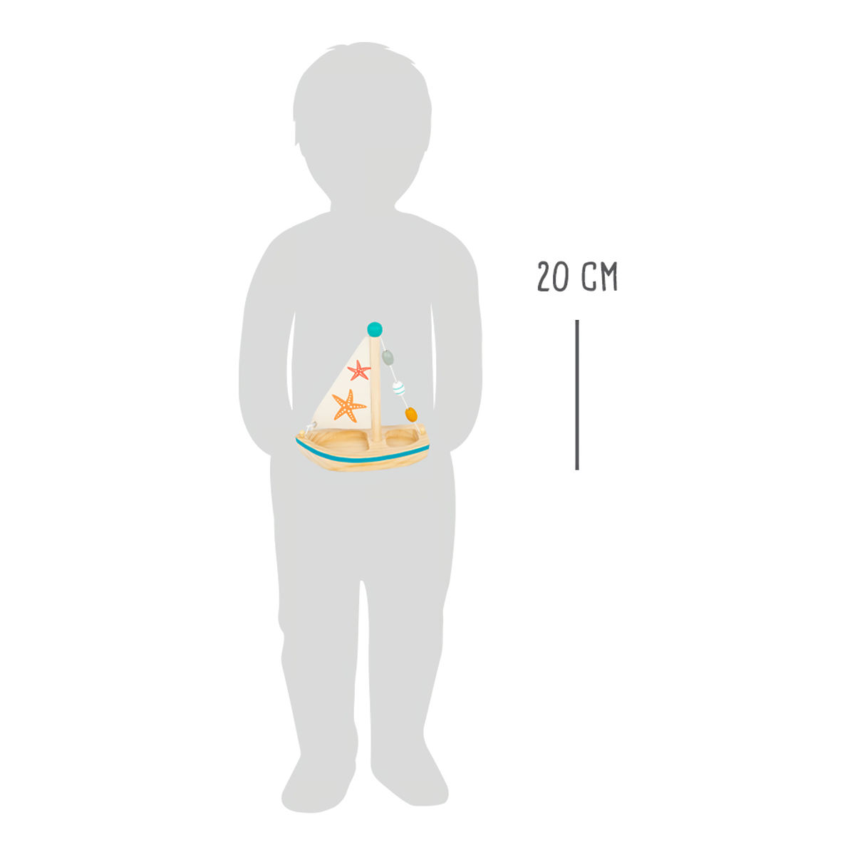 Svi kapetani, molim pažnju! S ovom drvenom jedrilicom djeca će postaviti kurs u svijet pun vodenih radosti. Kada mladi mornari podignu sidro, ništa ih neće zaustaviti u njihovoj igri, bilo u kadi, na bazenu ili na moru. Jedrilica je prostrana, tako da u nju mogu staviti vlastite figurice. Jedrilica je ukrašena drvenim perlicama i otiskom zvjezdača. Vodene igračke izrađene od drva ekološkija su alternativa plastičnim i gumenim igračkama. Za duži vijek trajanja igračke, nakon vađenja iz vode, temeljito je osušite. Glavne značajke: korištenje u kadi, na bazenu ili na moru, igra potiče maštu, tijekom plovidbe u prirodi pokreće je vjetar