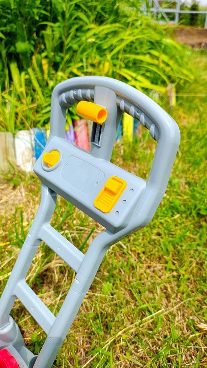 Kosilica je vrlo jednostavna za upravljanje. U pakiranju se nalazi i posuda s tekućinom za sapunaste mjehuriće zapremine 118 ml i ručka/držač za kosilicu. Podvozje kosilice je zapravo srce ovog proizvoda. Ovdje se nalazi mehanizam za ispuštanje mjehurića. Potrebno je odvrnuti poklopac i umetnuti 3 AA baterije - neophodne za pokretanje mehanizma. Pored se nalazi navoj s cjevčicom - ovdje je potrebno zavrnuti priloženu bočicu. Bez brige! Bočica je puna - ako vam ponestane tekućine, pozivamo vas na kupnju velike boce s rezervnom tekućinom zapremine 1,89 l, što je dovoljno za punjenje 16 punih bočica. Ostaje samo montirati ručku i možete započeti "košenje" travnjaka i ne samo to :)
