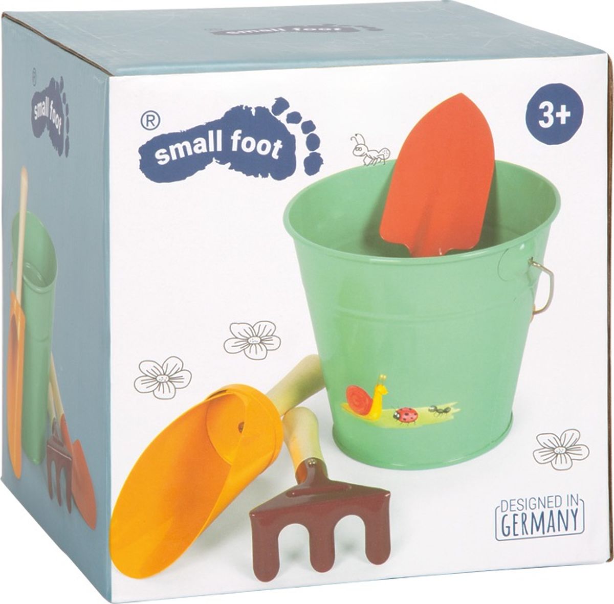 Set vrtnog alata s kantom "Tiny Garden" oduševit će sve male vrtlare i graditelje pješčanih dvoraca. Čvrsti alati od metala i drva dizajnirani su upravo za dječje ruke, a metalna kanta s veselim životinjskim motivima dodaje cijelom setu razigran šarm. Bilo da djeca kopaju, sade, prenose vodu ili oblikuju dvorac od pijeska, imat će sve potrebno nadohvat ruke. Zahvaljujući svojoj praktičnoj veličini, lako se prenose i koriste bilo gdje – od vrta do plaže. Metalna kanta je također pravi pomoćnik – izvrsno služi za vodu, pijesak i zemlju. Glavne značajke: 4-dijelni set: 2x lopatica, grablje, metalna kanta, robusna izvedba od metala i drva, idealno za male ruke, trendi boje i slatki životinjski motivi, razvija motoriku, kreativnost i odnos prema prirodi, svestrana upotreba – za sadnju, kopanje, oblikovanje i prenošenje, prikladno za vrt, pješčanik i plažu