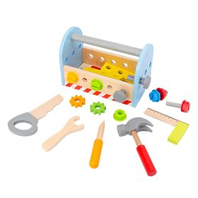 Drvena kutija za alat nudi kreativan oblik zabave za male DIY majstore. Realistični alati razvijaju dječju logiku, finu motoriku i promiču razumijevanje tehnologije.