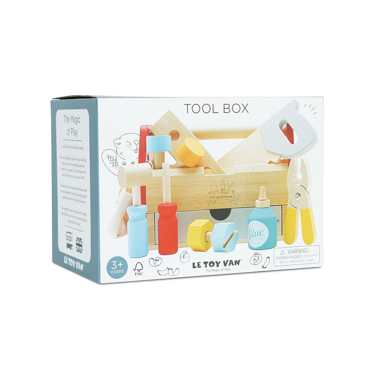 Zabavite mlade umove i ruke s ovom tradicionalnom igračkom. Drveni alat u kutiji za dječake i djevojčice savršen je za vježbanje motorike tijekom maštovite igre. U pakiranju ćete pronaći kutiju, tekstilnu torbu, kliješta, odvijač, perforiranu pločicu, dva čavla, vijak s maticom, drveni ljepilo i čekić. Izrađeno od održivog drva, obojano netoksičnim bojama na bazi vode. Igračke s ciljemSve igračke tvrtke Le Toy Van izrađene su s ciljem – da dugo traju. Dizajnirane s ljubavlju iskusnih majstora koristeći etičke prakse i održive materijale koji su ljubazniji prema našem planetu. Glavne značajke: etički proizvedeno od održivog drvatestirano prema najstrožim standardimaobojano netoksičnim bojama na bazi vodeinspirira na maštovitu igru razvija kognitivne vještine Nagrade za igračke:Junior Design Awards Shortlist 2018Good Toy Guide Recommended Vozila & gradnja: Građevinska i motorička kolekcija Le Toy Van, koja je osvojila mnoge nagrade. Točnije, do sada više od 15 nagrada za maštovita vozila i građevinske igračke. Podržavaju dječju maštu, idealne su za maštovitu igru, razvijaju kreativnost i poboljšavaju dječju koordinaciju ruka-oko. Marka i certifikat FSC® (Forest Stewardship Council) jamči da drvo od kojeg je proizvod izrađen nije ilegalno posječeno i dolazi iz šuma kojima se upravlja pažljivo ili na prirodi blizak način, gdje se poštuju strogi ekološki i socijalni zahtjevi. FSC® oznaka na proizvodu znači da svojim kupnjom pomažete zaštiti šume i podržavate pažljivo, odgovorno ili prirodi blisko gospodarenje, zahvaljujući kojem su naše šume stabilnije, zdravije, imaju prirodni sastav vrsta i bolje odolijevaju negativnim posljedicama klimatskih promjena.