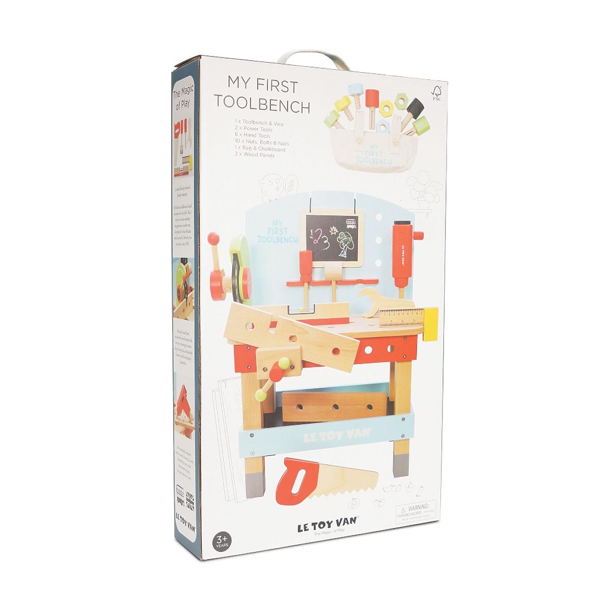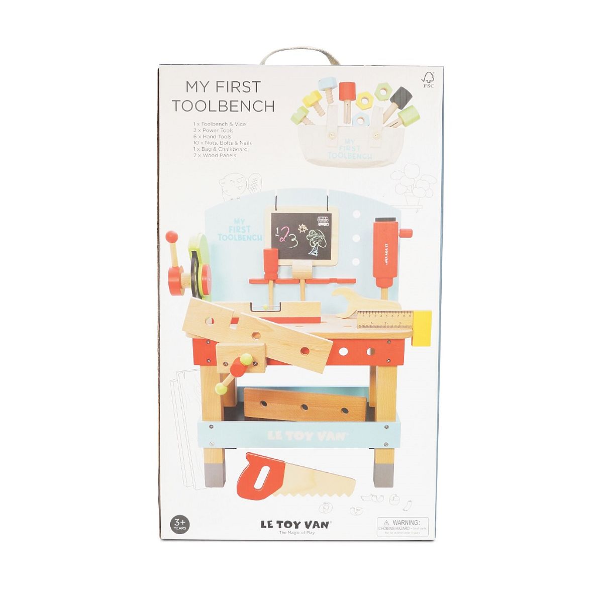 Pripremite se za zabavu u radionici s ovim drvenim radnim stolom s alatima. Opsežan set će djecu naučiti mnogo o radu u radionici i manualnim vještinama. Radni stol i dodaci izrađeni su od čvrstog drva, izdržat će zaista dugo. Među opremom ćete pronaći bušilicu, kružnu pilu, škripac, pilu, čekić, odvijač, libelu, kutno ravnalo, ključ i ploču za kredu. Djeca će uživati u igri uloga. Radni stol ima policu ispod koja služi kao prostor za pohranu. U dvije perforirane drvene ploče mogu se uvrnuti vijci s maticama. Igračke s namjeromSve igračke tvrtke Le Toy Van izrađene su s ciljem – da traju dugo. Dizajnirane s ljubavlju od strane iskusnih obrtnika koristeći etičke prakse i održive materijale, koji su ljubazniji prema našem planetu. Glavne značajke: izrađeno etički od održivog FSC drvatestirano prema najstrožim standardimaobojano netoksičnim bojama na bazi vodeinspirira na maštovitu igru razvija kognitivne vještine Nagrade za igračke:Good Toy Guide Approved Auta & građevine: Građevinska i motorička kolekcija Le Toy Van, koja je osvojila mnoge nagrade. Točnije, do sada više od 15 nagrada za maštovite automobile i građevinske igračke. Podržavaju dječju maštu, idealne su za maštovitu igru, razvijaju kreativnost i poboljšavaju dječju koordinaciju ruka-oko. Marka i certifikat FSC® (Forest Stewardship Council) jamče da drvo od kojeg je proizvod izrađen nije ilegalno posječeno i potječe iz šuma koje se održavaju pažljivo ili prirodno, gdje se poštuju strogi ekološki i socijalni zahtjevi. FSC® oznaka na proizvodu znači da svojim kupnjom pomažete u zaštiti šuma i podržavate pažljivo, odgovorno ili prirodno upravljanje, zahvaljujući kojem su naše šume stabilnije, zdravije, imaju prirodni sastav vrsta i bolje odolijevaju negativnim posljedicama klimatskih promjena.