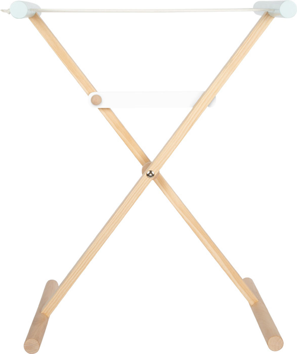 Na ovom drvenom stalku za sušenje rublja lako je osušiti svu odjeću za lutke, medvjediće i njihove prijatelje. Ovaj stalak za rublje, koji se lako sastavlja, sadrži pet pamučnih užadi na visini prilagođenoj djeci. Idealna je igračka za igru uloga koja imitira roditelje u njihovim kućanskim poslovima i na zabavan način potiče djecu na svakodnevne zadatke. Dolazi s sigurnosnom šipkom za stabilno postavljanje. Sjajan je dodatak svakoj dječjoj sobi, koji vizualno ostavlja odličan dojam zahvaljujući količini prirodnog drvenog materijala i nježnoj boji prirodnog drva. Rublje je suho! Nakon završetka igre stalak za rublje lako se može sklopiti i spremiti kako bi se uštedio prostor. Glavne značajke: 5 komada tekstilnih užadi sigurnosna šipka za stabilno postavljanje potiče kreativnost
