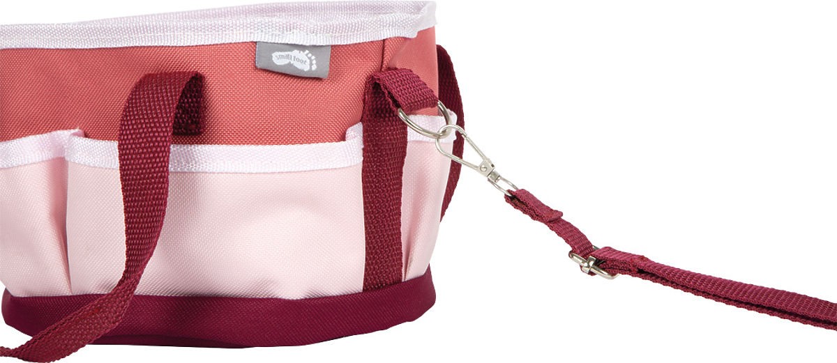 Torba s priborom za čišćenje i njegu konja. Prikladna je za svu djecu koja vole konje. Torba je izdržljiva, praktična i dovoljno prostrana da primi svu opremu. Njega konja dio je svakodnevne rutine svakog ljubitelja konja, a konji obožavaju četkanje. Torba s dodacima izrađena je od visokokvalitetnih materijala i sve što vam treba imate pri ruci, čak i kada ste na putu. Među dodacima su četka, češalj, strugač za kopita i češalj za grivu, sve to stane u prostranu unutrašnjost torbe i u mali bočni džep. Naravno, tu su i drvena jabuka i mrkva. Set dolazi s turnirskom vrpcom koju djeca mogu pričvrstiti na ovratnik glave svog konja ili na vlastitu odjeću. Pribor za čišćenje konja savršeno je prilagođen potrebama mladih ljubitelja konja, tako da mladi jahači mogu pustiti mašti na volju dok se igraju. Udobna vezica omogućuje torbu široko otvoriti, ali i potpuno zatvoriti. Ovu dječju torbu možete nositi za obje ručke ili podesivi remen za rame. S ovim setom za njegu djeca se mogu brinuti o svom omiljenom konju baš kao profesionalci. Glavne značajke: neophodan pribor u torbi za svakog ljubitelja konja, podesivi remen za rame, sveobuhvatan set