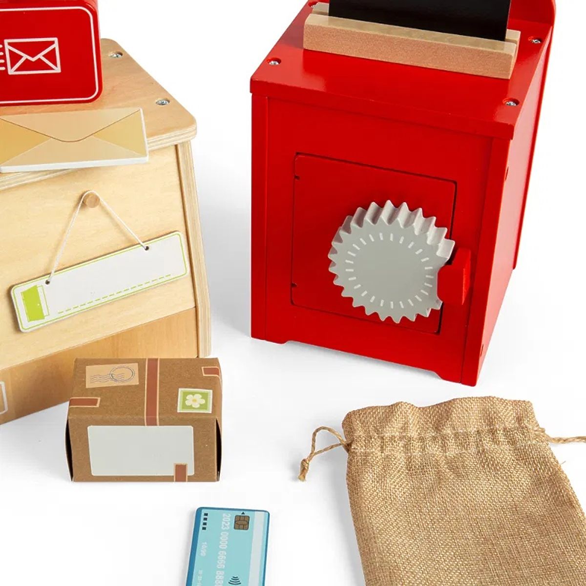 Što se sve radi na pošti? Mali poštari mogu doživjeti užurban dan razvrstavanjem i dostavljanjem pošte s vlastitim poštanskim setom! Set sadrži sve što je pravom poštaru potrebno za rad: poštanski sandučić, blagajnu, vagu, vreću za pakete, pakete, pisma, razglednice, pečat i još mnogo toga. Igra uloga izvrsna je za dječju maštu, kreativnost, socijalne vještine i razvoj jezika. Uloge poštanskih djelatnika ili kupaca također će poboljšati njihove komunikacijske sposobnosti kroz vježbanje govora, slušanja, čitanja i pisanja. Set je izrađen od vrhunskog i održivog drva s FSC® certifikatom i obojen netoksičnim bojama i lakovima. Zadovoljava trenutne europske sigurnosne standarde. Sadržaj pakiranja: poštanski sandučić s pločom, blagajna, vaga, vreća, paketi, pisma i razglednice, kreditna kartica i terminal, pečat, računi Glavne značajke: 19 dijelova razvija maštu, kreativnost, socijalne vještine podržava igru uloga izrađeno od drva s FSC® certifikatom prikladno od 3 godine starosti Marka i certifikat FSC® (Forest Stewardship Council) jamče da drvo od kojeg je proizvod izrađen nije ilegalno posječeno i dolazi iz šuma koje se održavaju na ekološki prihvatljiv ili prirodi blizak način, u kojem se poštuju strogi ekološki i socijalni zahtjevi. FSC® oznaka na proizvodu znači da svojim kupnjom pomažete zaštiti šume i podržavate održivo, odgovorno ili prirodi blisko gospodarenje, zahvaljujući kojem su naše šume stabilnije, zdravije, imaju prirodni sastav vrsta i bolje odolijevaju negativnim posljedicama klimatskih promjena.