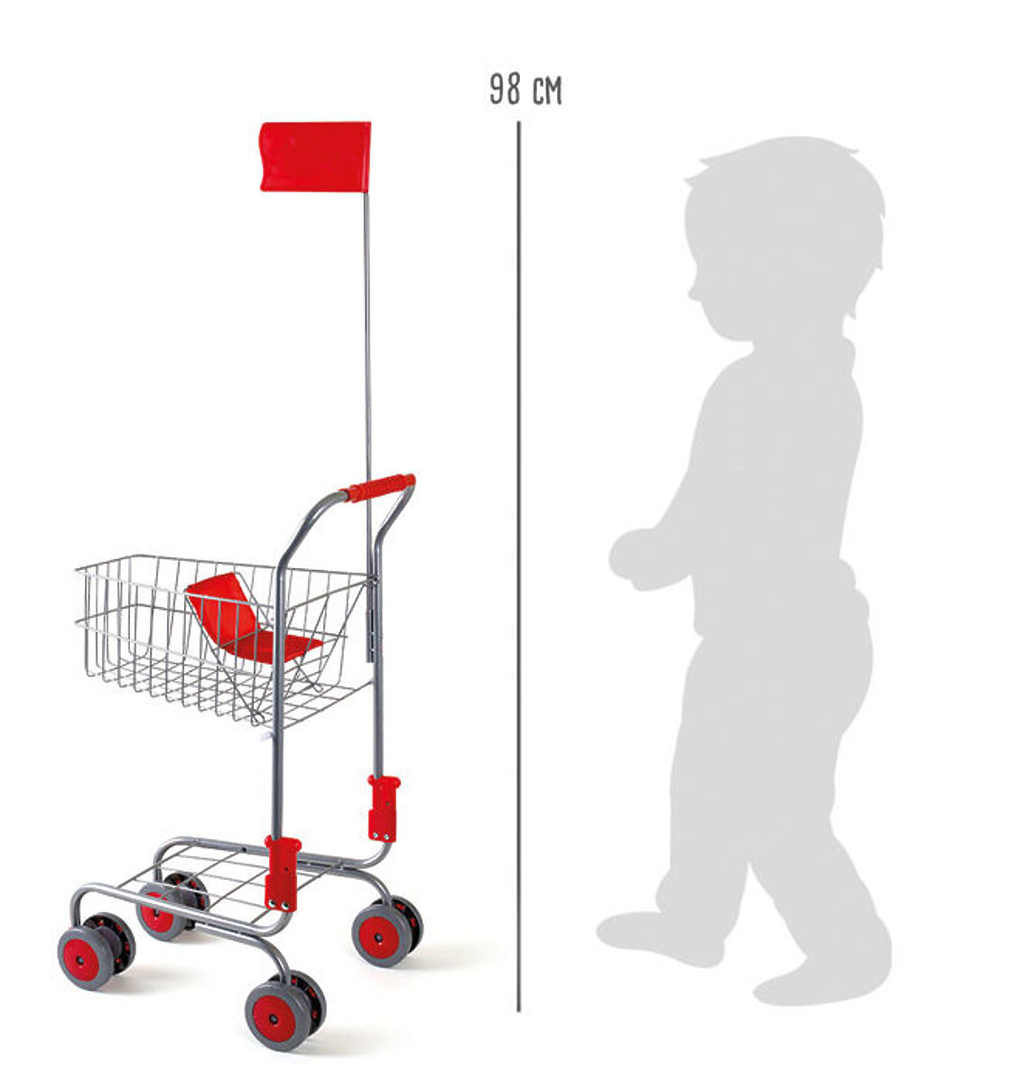 Oštećena ambalaža. Novi proizvod bez nedostataka. S ovim kolicima za kupovinu, kupovina će djeci biti vrlo zabavna. Zahvaljujući srebrnom dizajnu ovih klasičnih kolica za kupovinu, ostavit ćete sjajan dojam na mlade kupce. Dolaze s crvenim naglascima na kotačima, ručki, okviru, s crvenom zastavicom i sklopivim sjedalom za lutke. Prednji kotači se mogu okretati za 360 stupnjeva, što čini ova kolica za kupovinu jednostavnim za upravljanje. S ovim kolicima za kupovinu, i najmlađa djeca mogu oponašati svoje roditelje i ići u kupovinu kao odrasli. Košara nudi dovoljno prostora za pohranu namirnica i igračaka, što je čini savršenim dodatkom za igraonice. Glavne značajke: prednji kotači koji se okreću za 360 stupnjeva, visina ručke 60 cm, jednostavno upravljanje