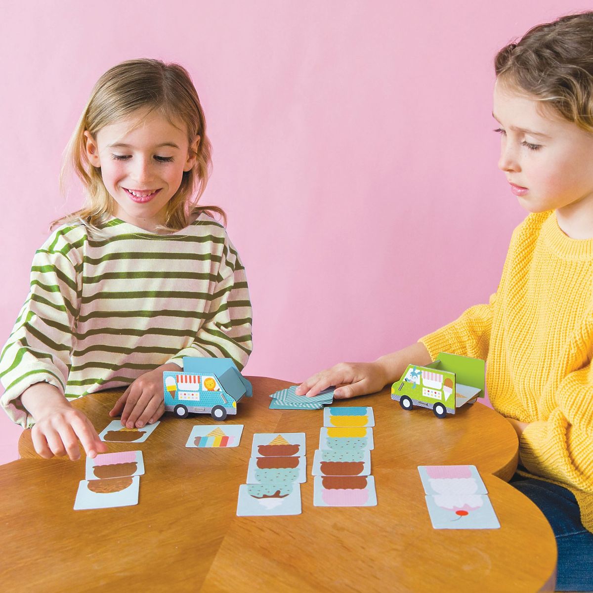 Ljubitelji slatkiša, ujedinite se! Najukusnija igra bez dodanog šećera. Slažite kornete sladoleda i dodajte posip u ovoj zabavnoj slagalici. Skupite što više kuglica sladoleda i pobijedite, ali ne zaboravite na posip! Glavne značajke: 52 ilustrirane karte i 4 sladoledna kamionaIgra za 2 do 4 igrača, prosječno trajanje igre 10 minutaIzrađeno od recikliranih materijala, tiskano tintom od povrćaZa dob od 4 do 8 godinaIspunjava sve sigurnosne standarde