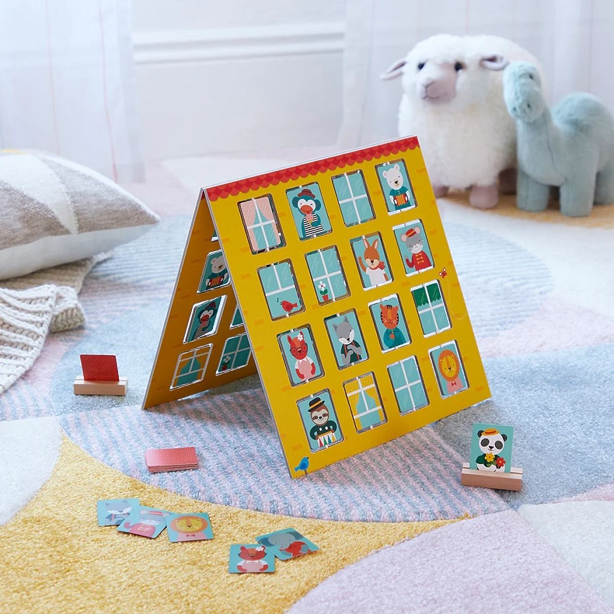 Kuc, kuc! Tko je to na prozoru? Je li to gladni majmun, bubnjajući ljenivac ili mašući klokan Wallaby? Pogodite tko je na prozoru vašeg protivnika prije nego što on pogodi tko je na vašem prozoru. Klasična i zabavna igra za dva igrača koja sadrži jedinstvenu obostranu ploču s rotirajućim prozorima. Izrađeno s obzirom na okoliš od 50% recikliranih materijala i tiskano biljnim tintama na FSC papiru. Namijenjeno djeci od 4 do 8 godina. U ovoj deduktivnoj igri s temom životinja igrači naizmjenično pogađaju tko je tajanstveni životinjski prijatelj postavljajući niz pitanja. Pakiranje sadrži obostranu ploču za igru, 16 karata s ilustracijama životinja, 2 postolja za figure životinja i upute. Glavne značajke: sadrži jedinstvenu obostranu ploču za igru bez plastike s preklopnim prozorimaizrađeno od 50% recikliranih materijala i tiskano biljnim tintamaudovoljava svim europskim sigurnosnim standardimaprosječno vrijeme igre 10 minutaprimjereno za djecu od 4 do 8 godina Znak i certifikat FSC® (Forest Stewardship Council) jamči da drvo od kojeg je proizvod izrađen nije ilegalno posječeno i dolazi iz šuma kojima se gospodari na ekološki prihvatljiv ili prirodi blizak način, gdje se poštuju strogi ekološki i socijalni zahtjevi. Znak FSC® na proizvodu znači da svojim kupnjom pomažete zaštiti šume i podržavate ekološki prihvatljivo, odgovorno ili prirodi blisko gospodarenje, zahvaljujući kojem su naše šume stabilnije, zdravije, imaju prirodni sastav vrsta i bolje odolijevaju negativnim posljedicama klimatskih promjena.