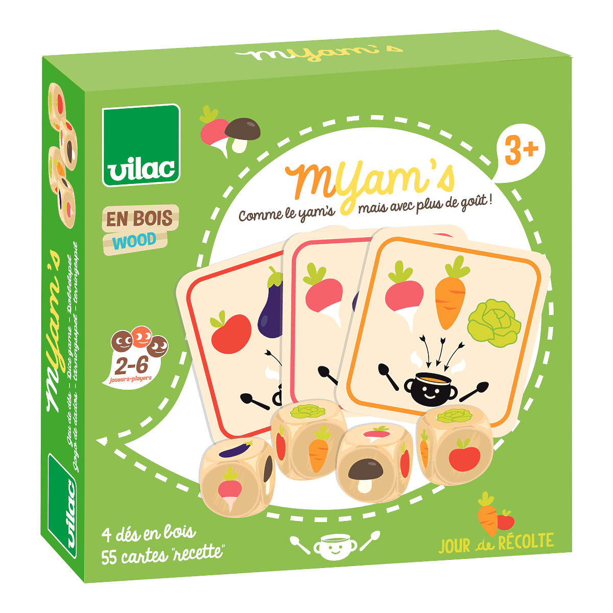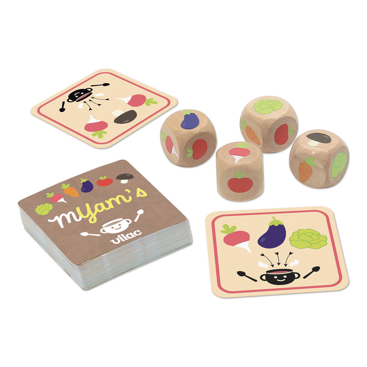 Ne samo vegani će uživati u ovoj zabavnoj igri s povrćem! Izvucite karticu s receptom i pokušajte baciti kockice kako biste dobili prikazanu kombinaciju. Tko će imati više sreće i prikupiti više kartica? Zahvaljujući jednostavnim pravilima i slikama, čak i najmlađi mogu igrati, dok stariji mogu začiniti igru brojanjem i dodjeljivanjem različitih vrijednosti pojedinim vrstama povrća. Glavne značajke: 55 kartica za igru i 4 kockice za 2–6 igrača atraktivan dizajn i izrada Skraćena pravila igre: Cilj igre je pomoću kockica stvoriti kombinacije koje odgovaraju karticama recepata. Podijelite 3 kartice recepata svakom igraču. Igrači se izmjenjuju u bacanju. Potez počinje bacanjem kockica. Igrači imaju 3 bacanja po potezu. U prvom bacanju bacaju sve tri kockice, a u sljedećim mogu bacati sve ili samo neke kockice. Ako igrač baci kombinaciju koja se podudara s jednom od njegovih kartica recepata, tu karticu dobiva. Zatim izvlači novu karticu. Pobjednik je igrač koji prvi prikupi 10 kartica recepata.