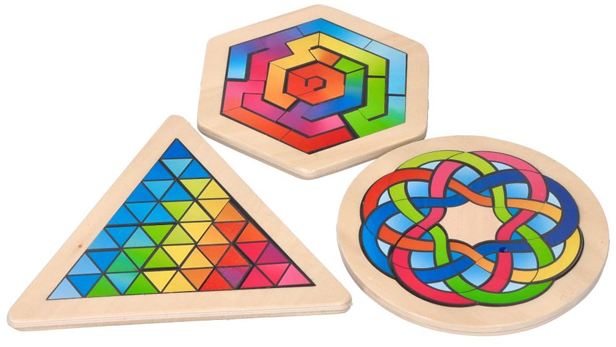 Serija slagalica Trener mozga nudi 3 elegantne vrste puzzli, u kojima je potrebno posložiti elemente tako da stvore mozaik koji odgovara oblikom i bojom. Svaka od njih predstavlja drugačiji uzorak i zahtijeva novo promišljanje puzzli: