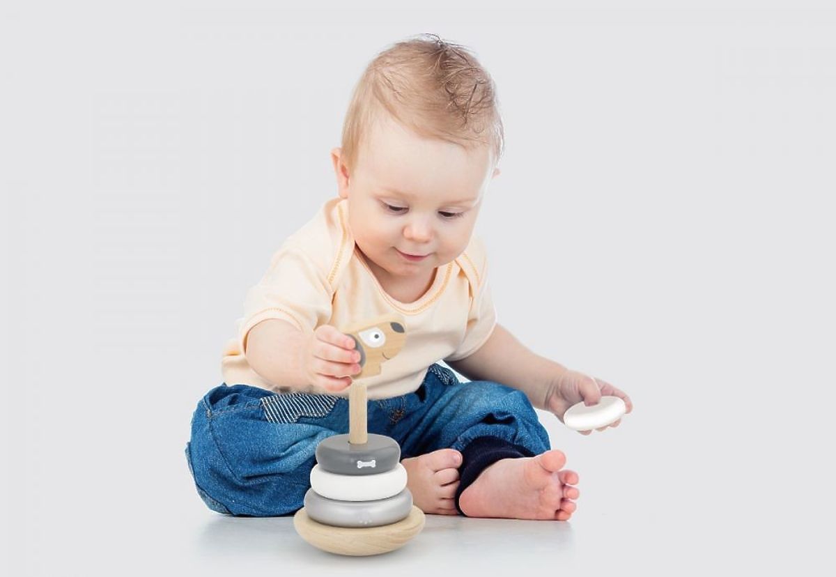Igračka na zabavan način razvija koordinaciju pokreta i poboljšava djetetove motoričke sposobnosti. Mališan prvo nauči udariti prsten na štapiću. Kasnije počinje razlikovati prstenove prema veličini i nižu ih u obliku piramide.