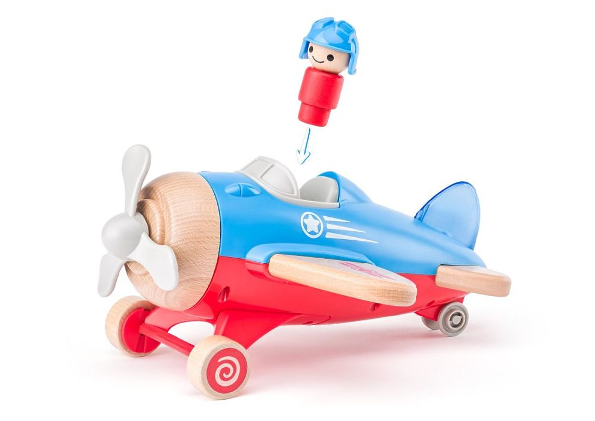 Leti li s nama pilot?:) Naravno da da. Već čeka spreman u svom stroju za zračne akrobacije. Ovaj avion je ostvarenje snova malih ljubitelja zrakoplovstva. Avion ima kotačiće i rotirajući propeler kako bi igra bila još realističnija. Pilota se može slobodno izvaditi iz kokpita, a kada ga postavite na njegovo mjesto i pritisnete, dijete će čuti zvukove.