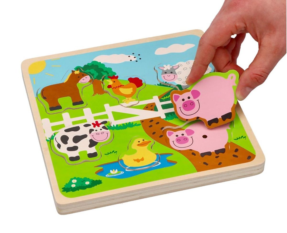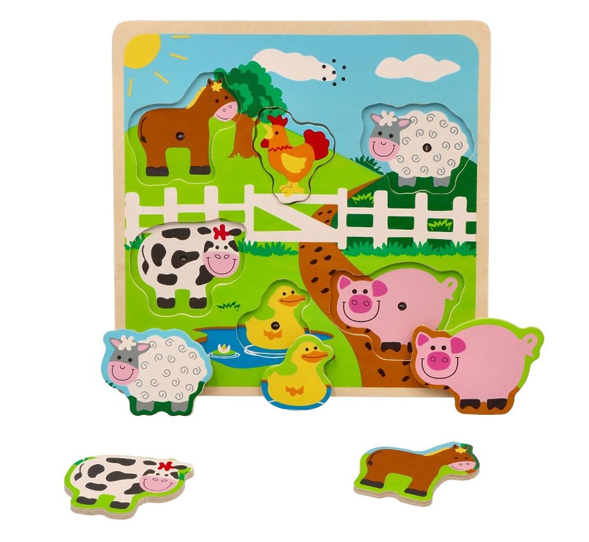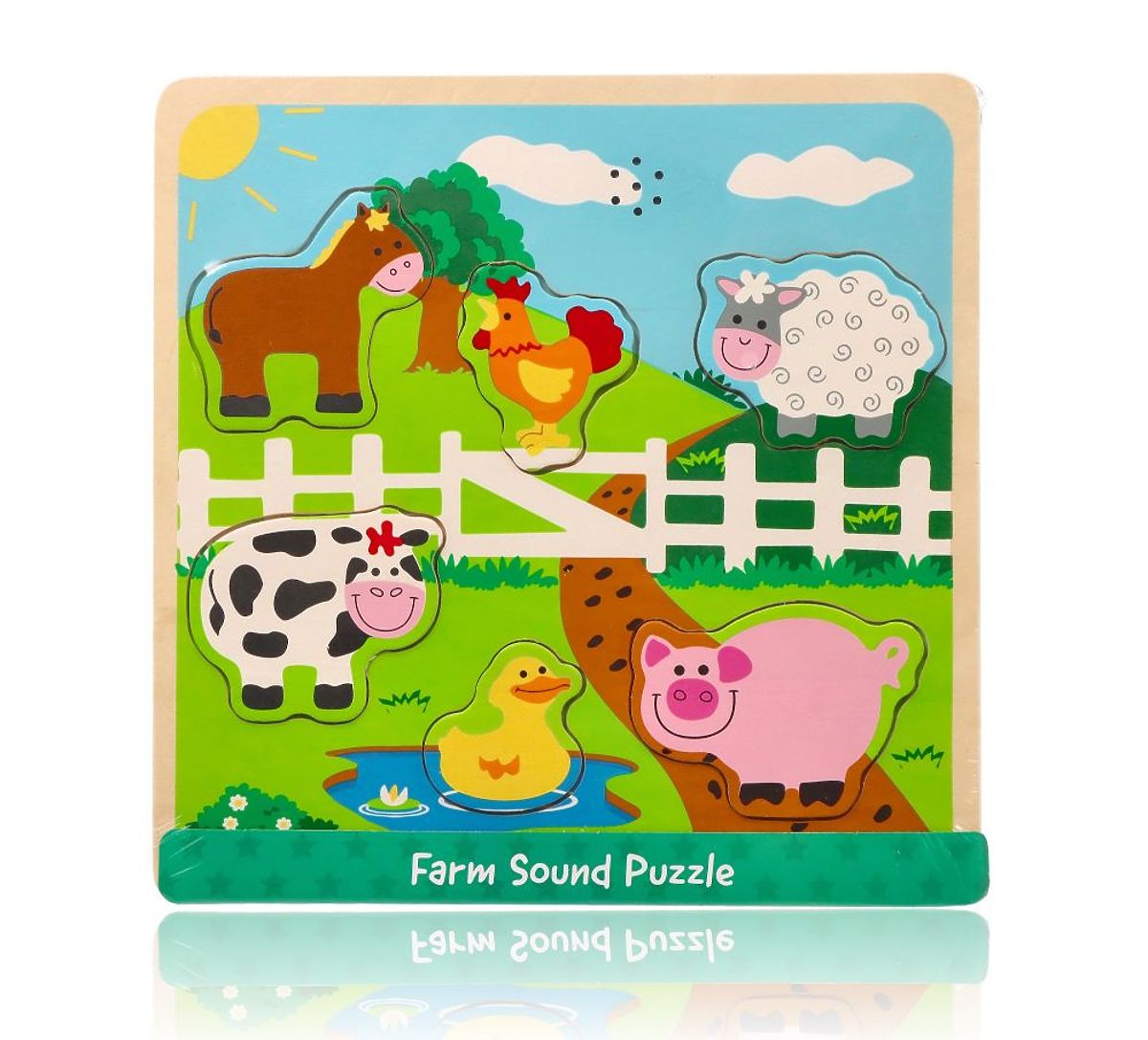 Hoćete li pomoći životinjama s farme pronaći svoje mjesto? Nudimo potpuno novu drvenu zvučnu slagalicu sa životinjama s farme. Dijete prilagođava dijelove slagalice praznim mjestima tijekom igre. Zvuk se pojavljuje kada je dio postavljen na ispravno mjesto.