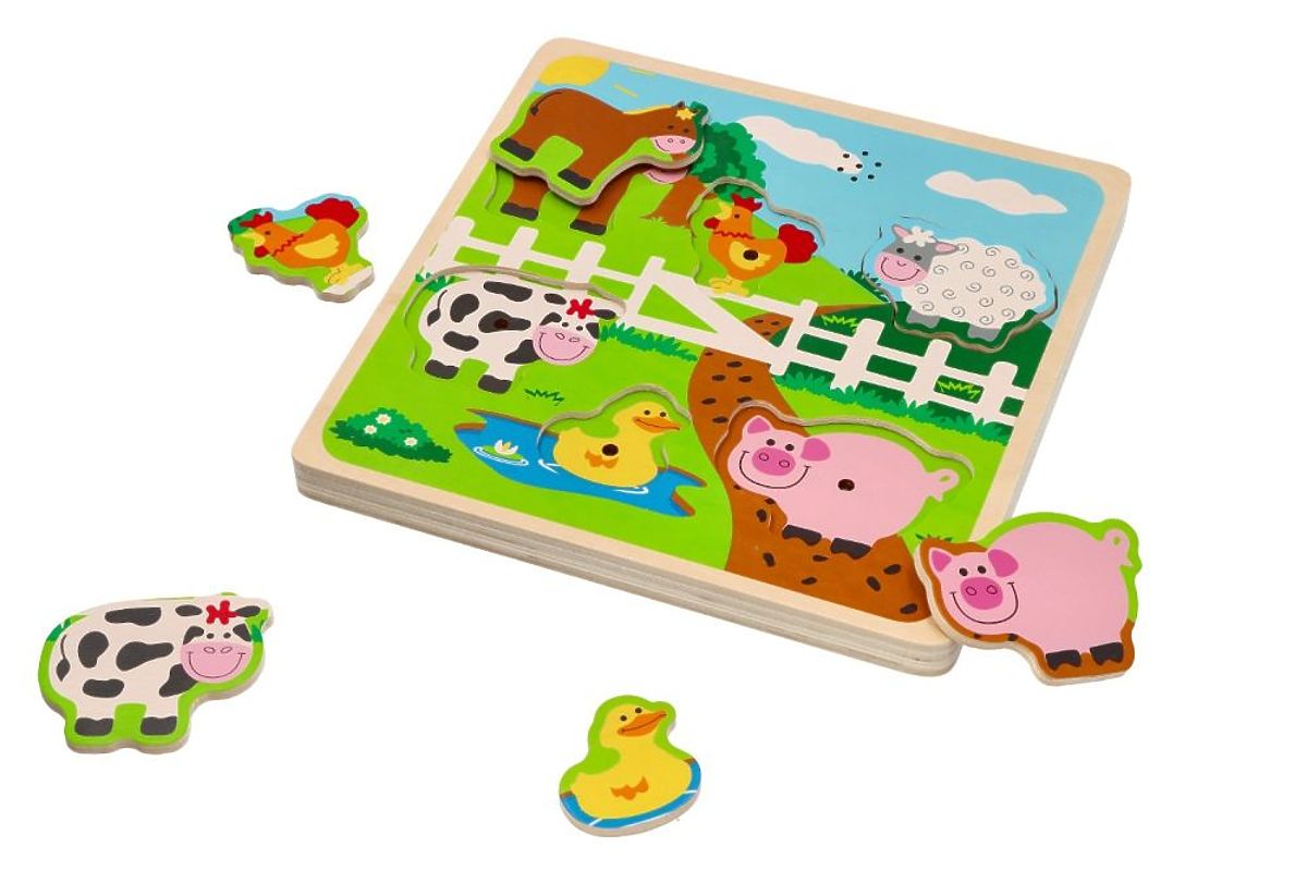 Slagalica je izrađena od prirodnog drva, sastoji se od baze i 6 dijelova. Ovdje ćete pronaći: patku, ovcu, pijetla, prase, konja i kravicu.