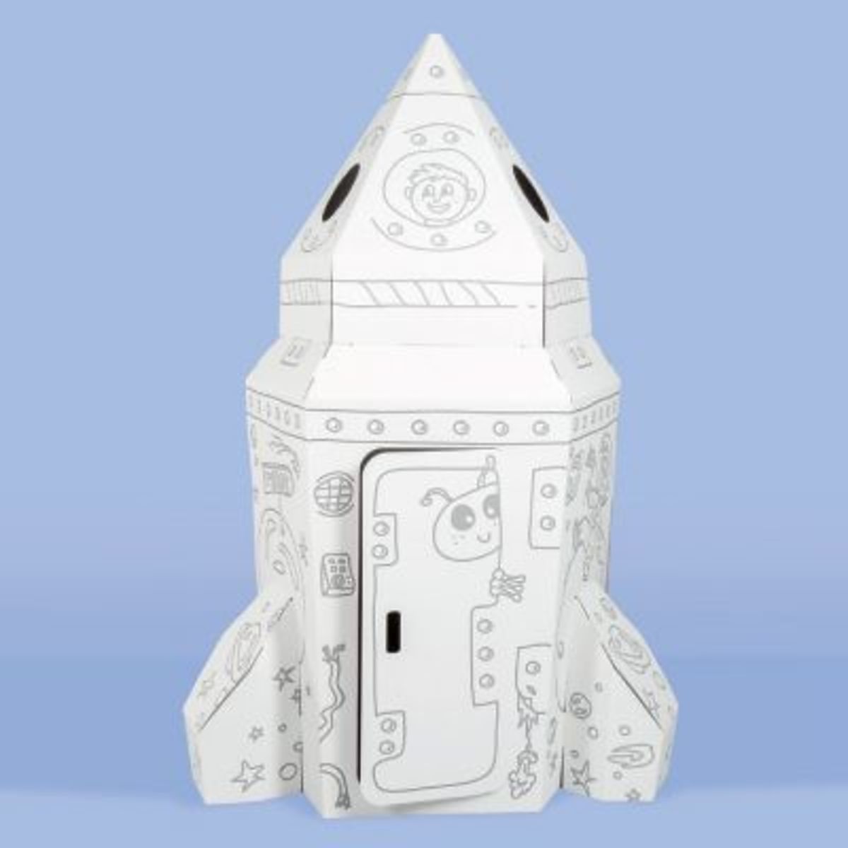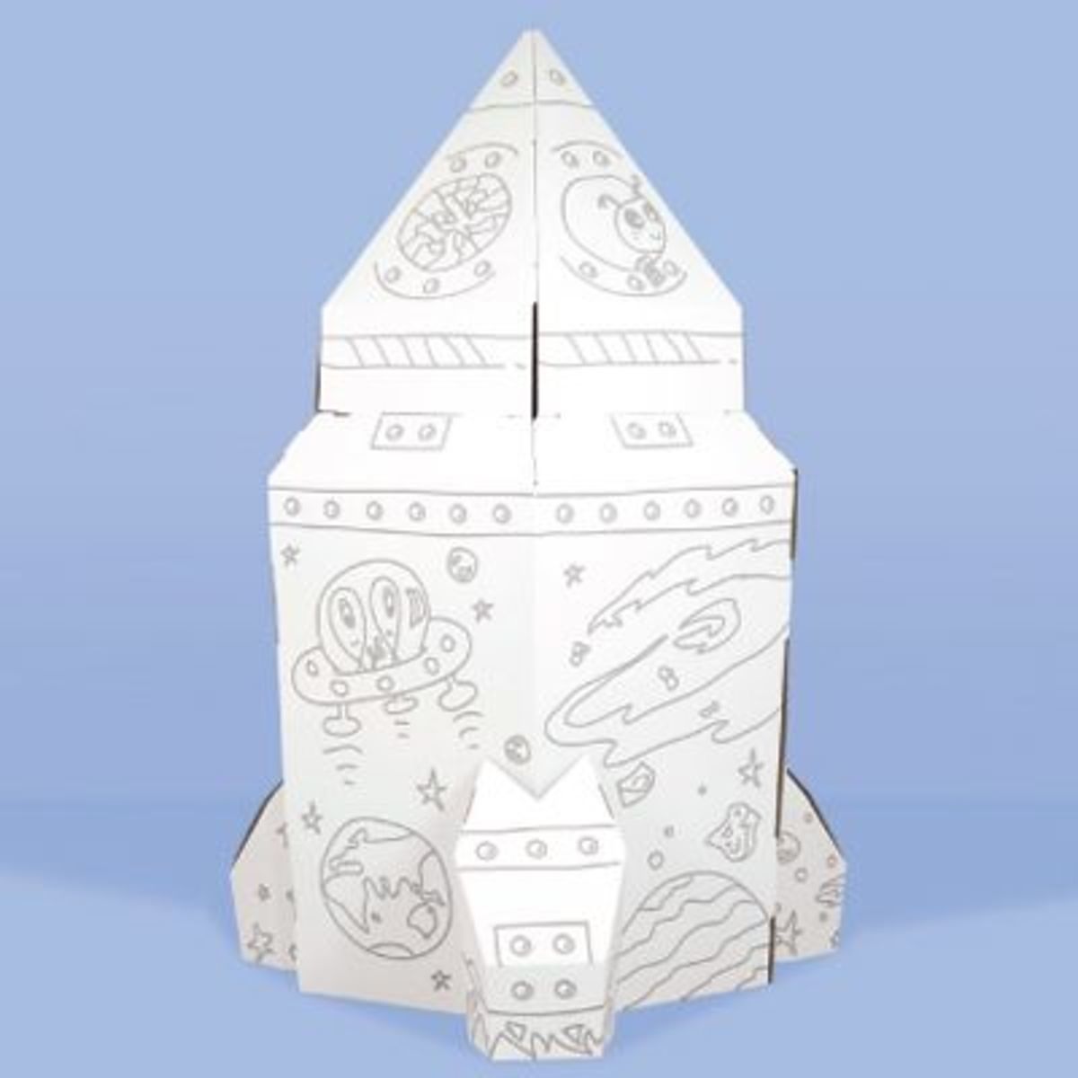 Raketa je izrađena od 5-slojnog bijelog valovitog kartona, za sastavljanje i bojanje. (ne zahtijeva ljepilo niti škare!)