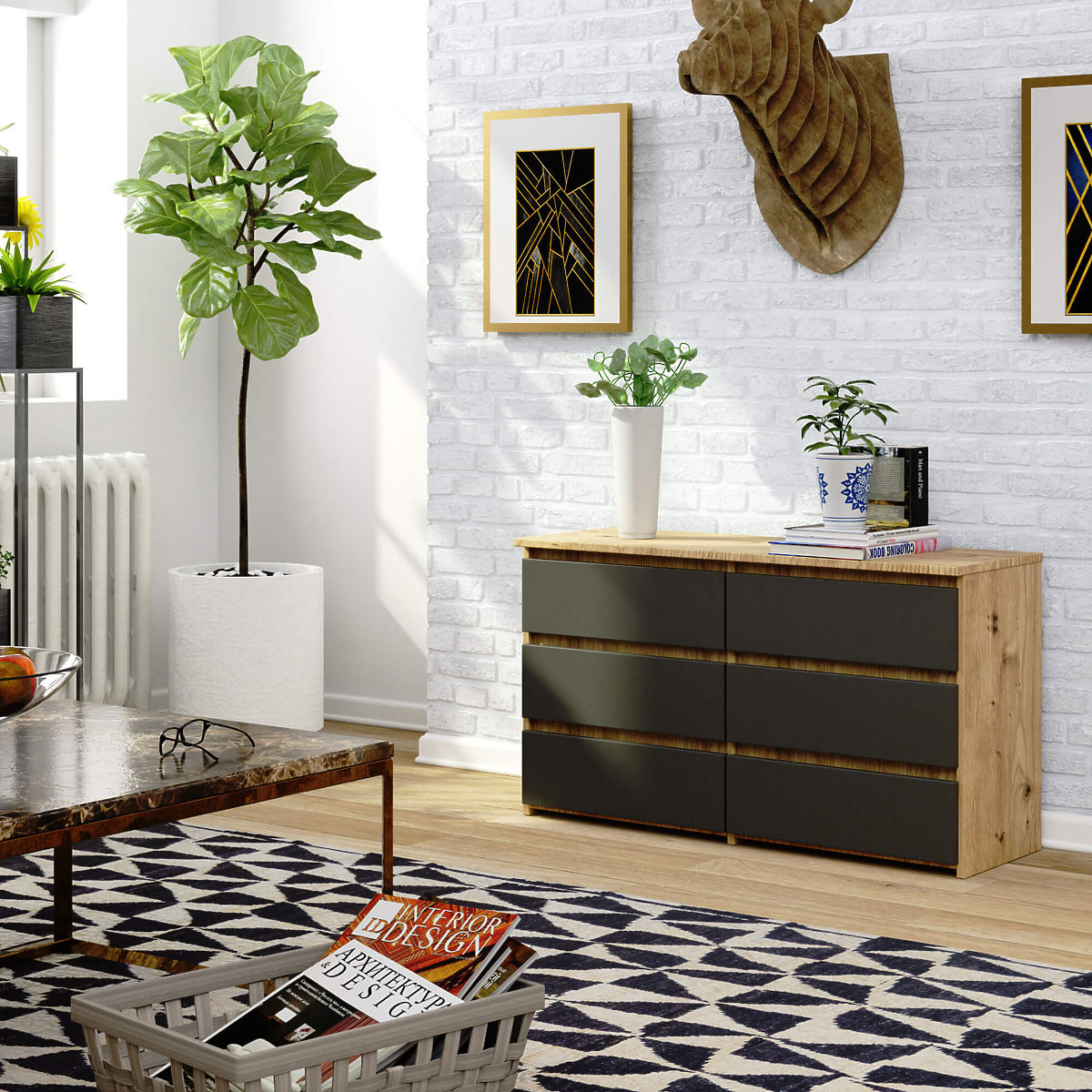U industriji namještaja poseban naglasak stavlja se na funkcionalnost proizvoda i njihovu visoku estetsku vrijednost. Izvrstan primjer je komoda CL 100 cm. Ovaj praktičan komad namještaja izrađen je od laminirane ploče otporne na habanje, što jamči njegovu trajnost i čvrstoću. U šest prostranih ladica možete smjestiti razne knjige, dokumente ili sitnice. Neki od naših kupaca odlučuju se za pohranu odjeće ili donjeg rublja. Komoda hrast artisan sa sivim prednjim stranama ima elegantan dizajn. Jednostavan oblik i elegantna izvedba odgovaraju kako klasičnim i elegantnim interijerima, tako i onima romantičnim. Ovaj izvanredan komad namještaja savršeno se uklapa u elegantan dnevni boravak i ugodnu spavaću sobu. Također se koristi kao dio garderobe ili hodnika. Komoda s 6 ladica cijenjena je kako od strane pojedinačnih kupaca, tako i poduzetnika. Zahvaljujući besprijekornom izgledu i izvanrednom kapacitetu, savršeno se uklapa kao dio uredske opreme.