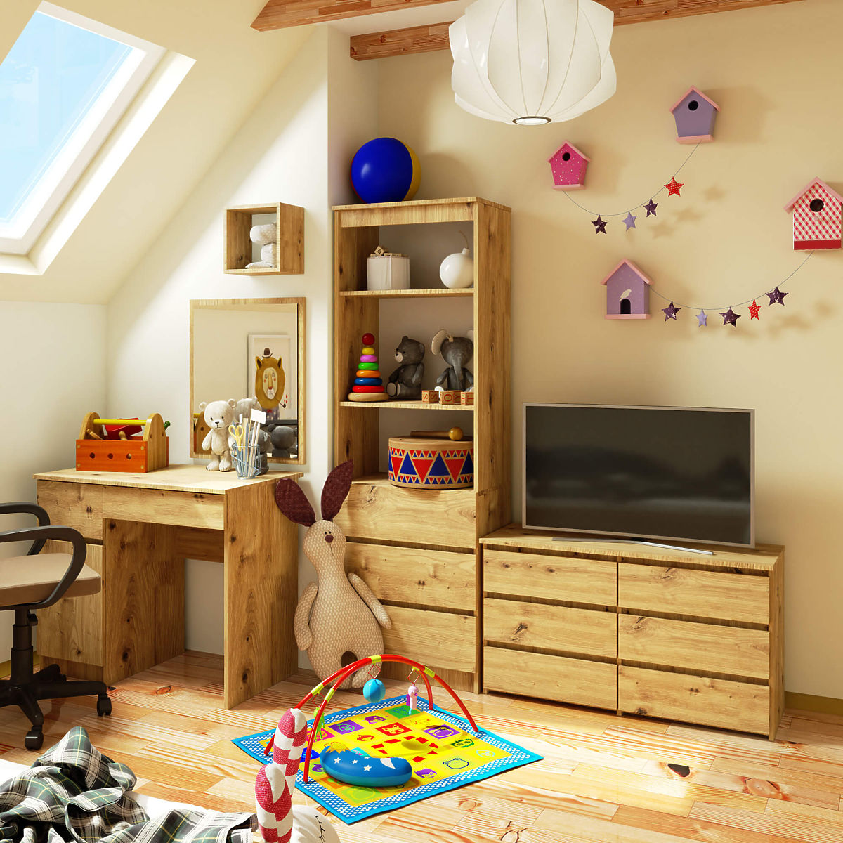 U industriji namještaja poseban se naglasak stavlja na funkcionalnost proizvoda i njihovu visoku estetsku vrijednost. Sjajan primjer je komoda CL 100 cm. Ovaj praktični komad namještaja izrađen je od laminirane ploče otporne na habanje, što jamči njegovu trajnost i otpornost. U šest prostranih ladica mogu se smjestiti razne knjige, dokumenti ili sitnice. Neki naši kupci odlučuju se za pohranu odjeće ili donjeg rublja. Komoda hrast artisan ima elegantan dizajn. Jednostavan oblik i elegantna izvedba uklapaju se kako u klasične i elegantne interijere, tako i u one romantične. Ovaj iznimni komad namještaja savršeno se uklapa u stilski dnevni boravak ili udobnu spavaću sobu. Također se koristi kao dio garderobe ili hodnika. Komoda sa 6 ladica cijenjena je kako od strane pojedinačnih kupaca, tako i poduzetnika. Zahvaljujući besprijekornom izgledu i iznimnom kapacitetu, savršeno se uklapa kao dio opreme ureda.
