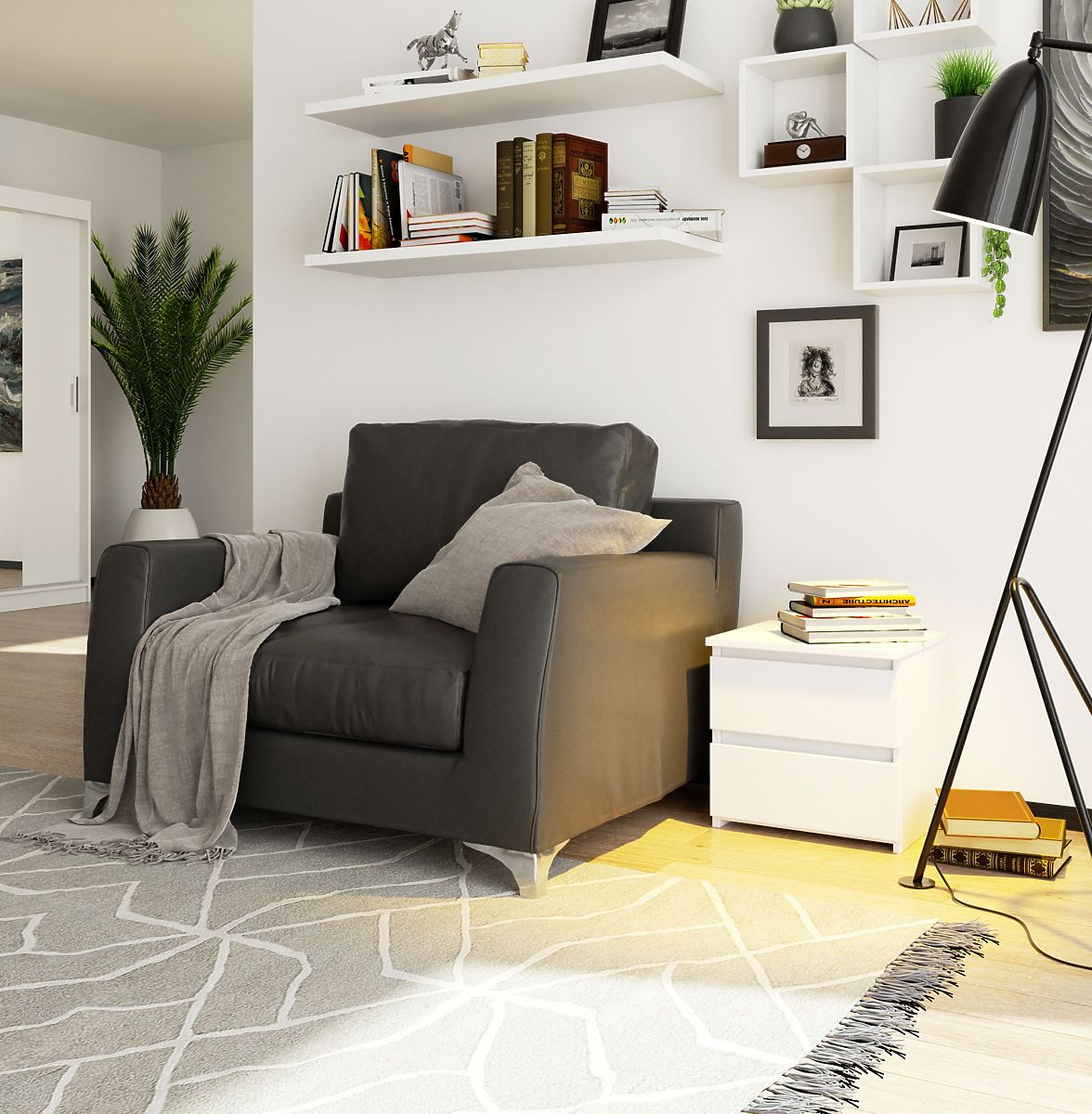 Noćni ormarić je jedan od osnovnih komada namještaja u spavaćoj sobi. Noćni ormarić je bijele boje, izrađen od laminirane ploče debljine 16 mm, koja je dodatno otporna na habanje. Prednje strane i bočne strane noćnog ormarića su obložene ABS rubom, koji pruža veću otpornost na manja mehanička oštećenja, poput ogrebotina. Ima dvije prostrane ladice bez ručki, u koje stanu svi potrebni predmeti koji trebaju biti pri ruci. Ormarić ima dimenzije 40 cm duljine, 40 cm visine i 35 cm dubine. Ladice su opremljene metalnim valjkastim vodilicama, koje se lako mogu izvaditi i očistiti po potrebi. Zahvaljujući univerzalnom uzorku i boji, uklapa se u svaku spavaću sobu i može se uspješno kombinirati s drugim komadima namještaja iz sustava CLP. Moderan i istovremeno minimalistički izgled omogućuje lako uklapanje u mnoge stilove interijera. Ploča je dovoljno velika da primi i noćnu lampu i male dekoracije ili knjigu.