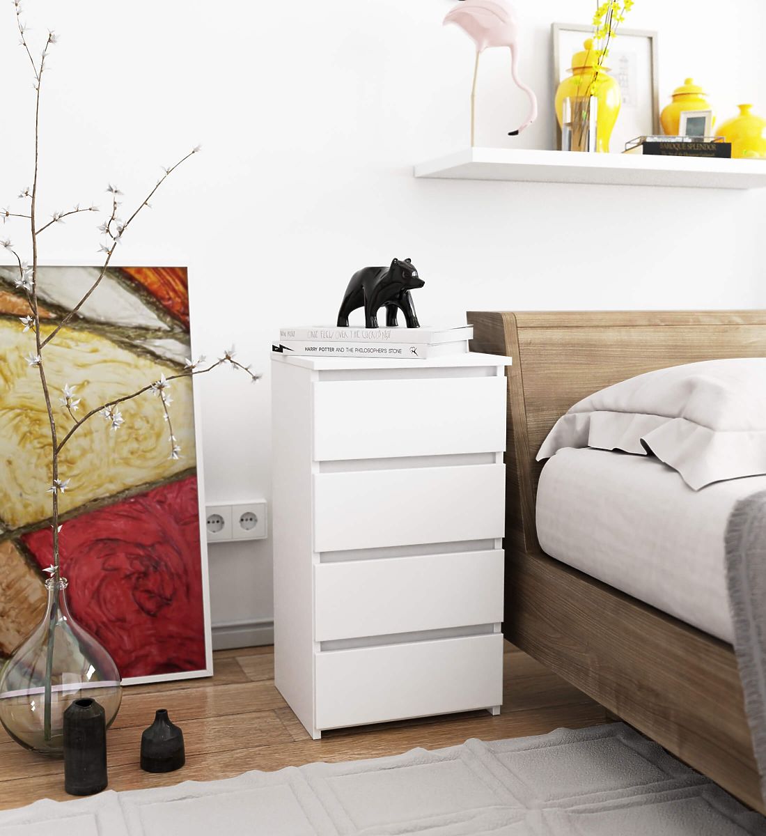 Bijela komoda CL4 s 4 ladice i ABS rubovima. .. više