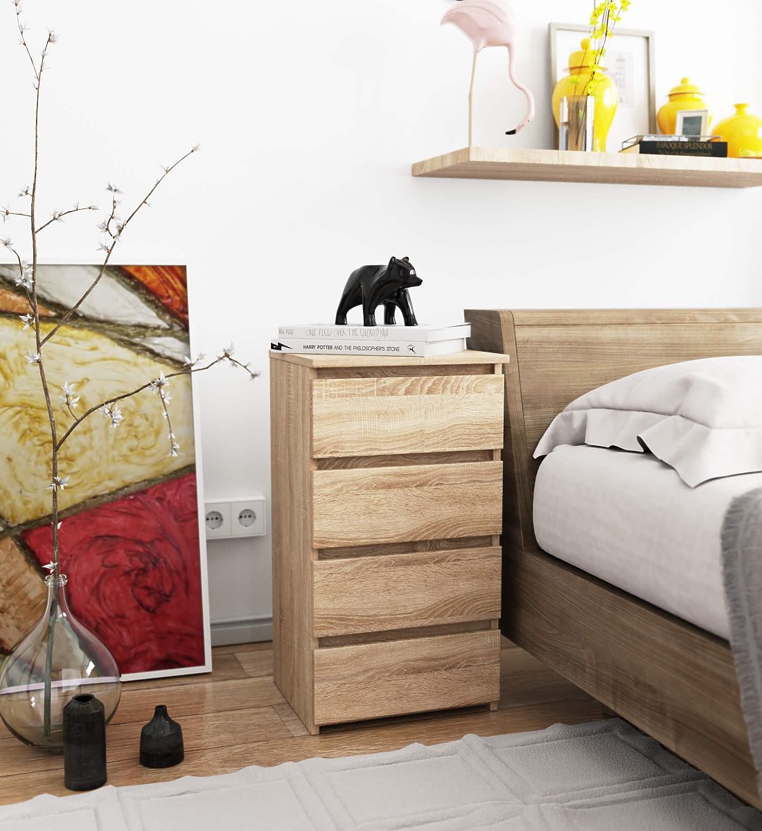 Komode su popularan tip namještaja koji se postavlja pored kreveta. Na njegovoj ploči najčešće se nalazi lampa, dok su unutra predmeti koji olakšavaju odmor i san. Osobe koje traže elegantnu komodu trebale bi obratiti pažnju na komodu CL4 40 cm u boji hrast sonoma. Prekrasno će se uklopiti u svaku spavaću sobu. Također je možete smjestiti u dječju sobu.