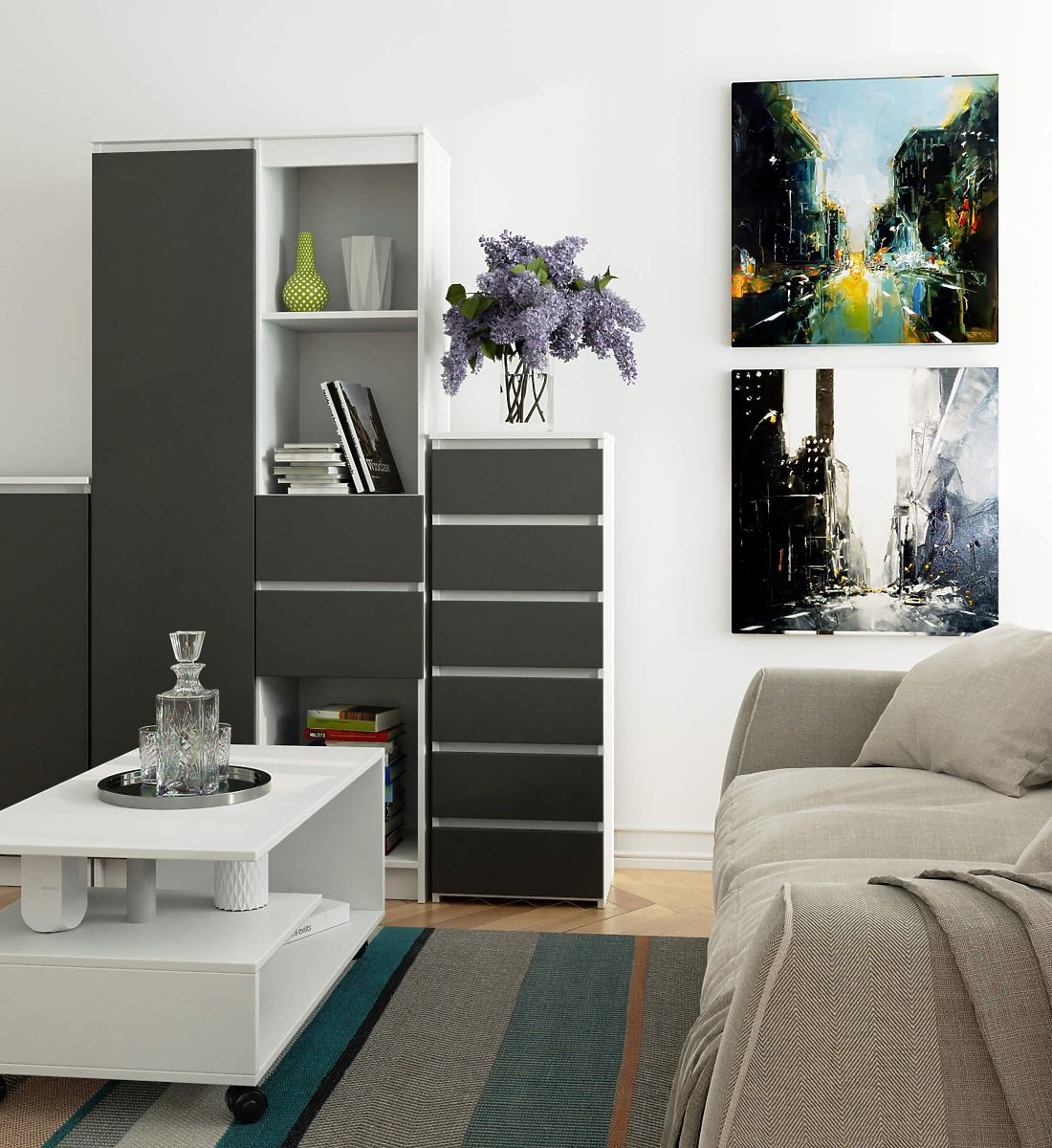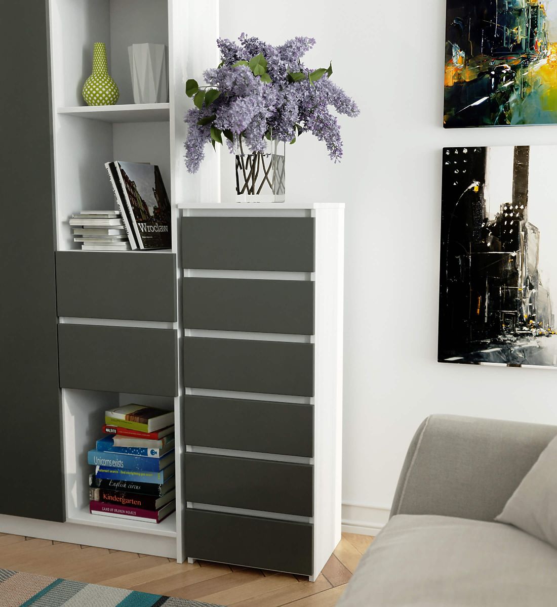 KOMODA CL6 6SZ BIJELA GRAFIT SIVA