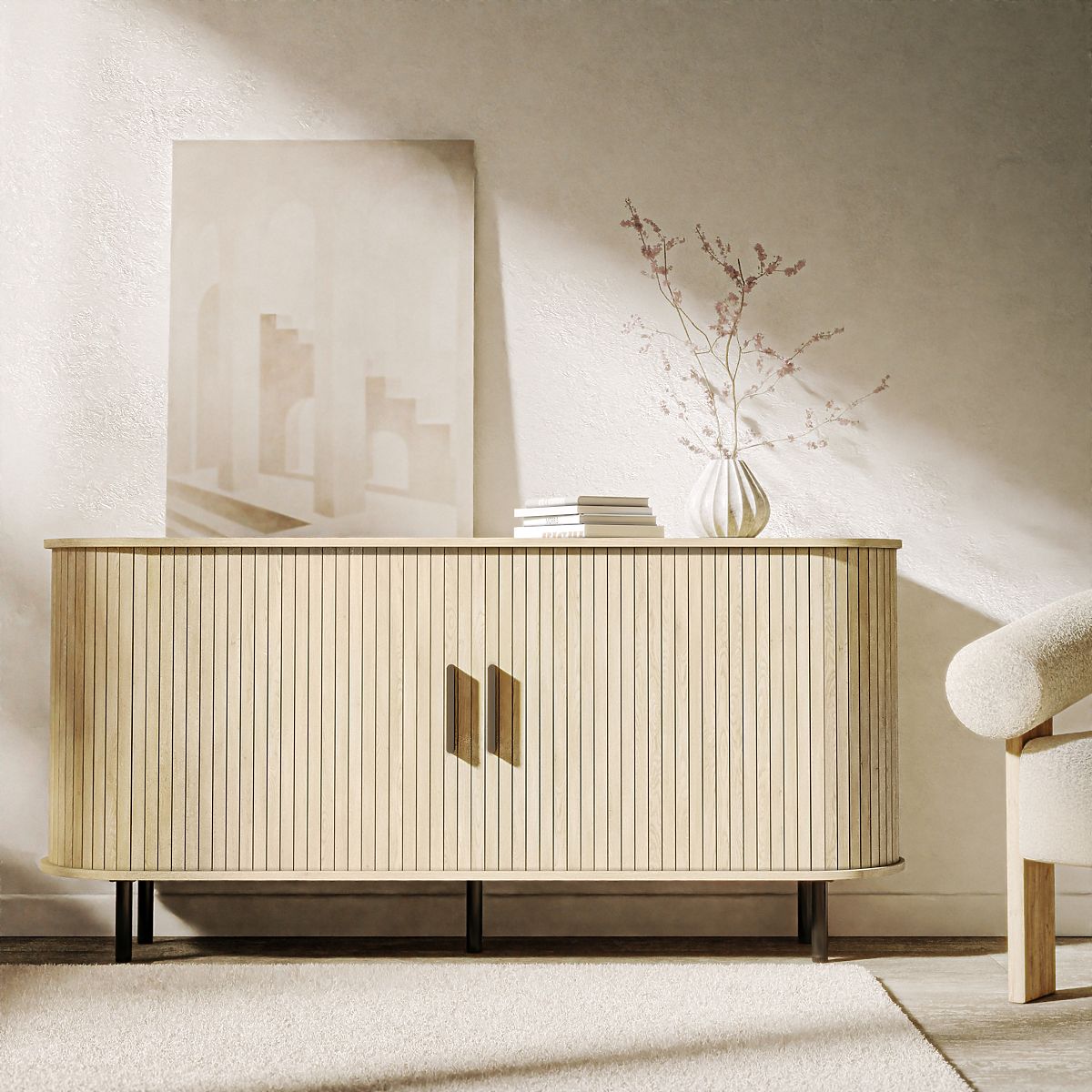 Zaobljena komoda Gliss s lamelama u svijetlom hrastu. .. više