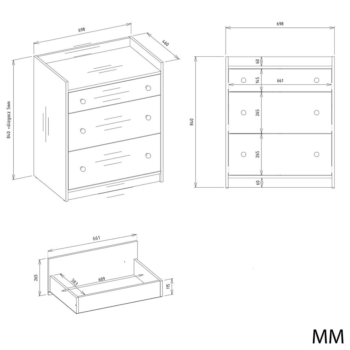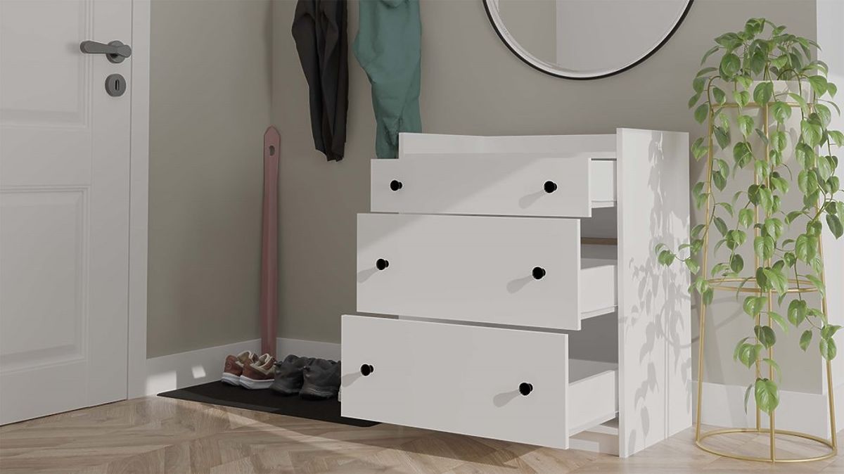Zahvaljujući 3 prostrane ladice s udobnim ručkama, pruža dovoljno prostora za pohranu odjeće, dodataka, tekstila ili dječjih potrepština.