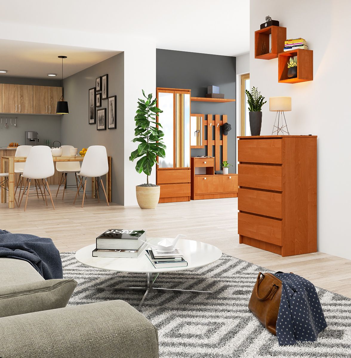 Jednostavna, ali vrlo efektna komoda K60 u bezvremenskoj boji javor prijedlog je koji se ne može zanemariti. Čvrsto izrađen namještaj opremljen je s četiri ladice i izdržljivim mehanizmom savršeno prilagođenim njihovoj duljini i težini. Komoda je izrađena kako bi zadovoljila potrebe i očekivanja i najzahtjevnijih kupaca. Pronaći će primjenu u mnogim stambenim prostorijama, kao i u uredskim prostorima, gdje omogućuje pohranu potrebnih predmeta. Vrijedi spomenuti povoljan omjer cijene i kvalitete. Komode u našoj internetskoj trgovini uživaju veliki interes kupaca kojima je funkcionalnost prioritet. Uz predstavljeni namještaj lako je odabrati dodatne elemente koji se slažu izgledom, stvarajući skladnu cjelinu.