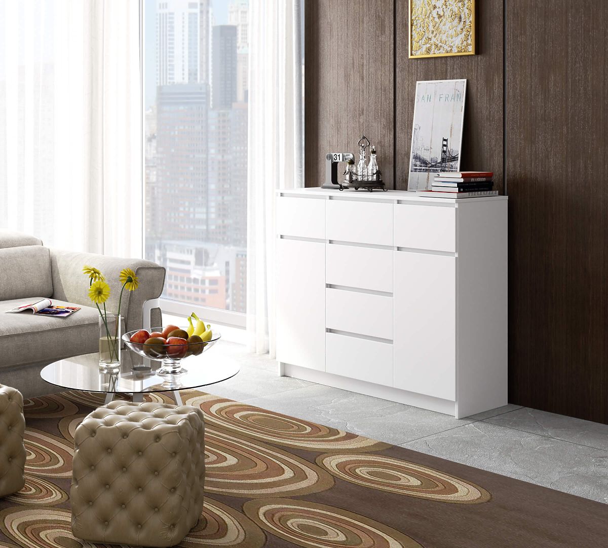 - Komoda izrađena od visokokvalitetne laminirane ploče debljine 16 mm otporne na habanje