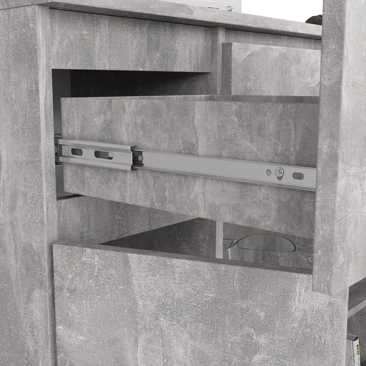 Komoda s tri ladice i dva vrata u betonskoj boji. .. više