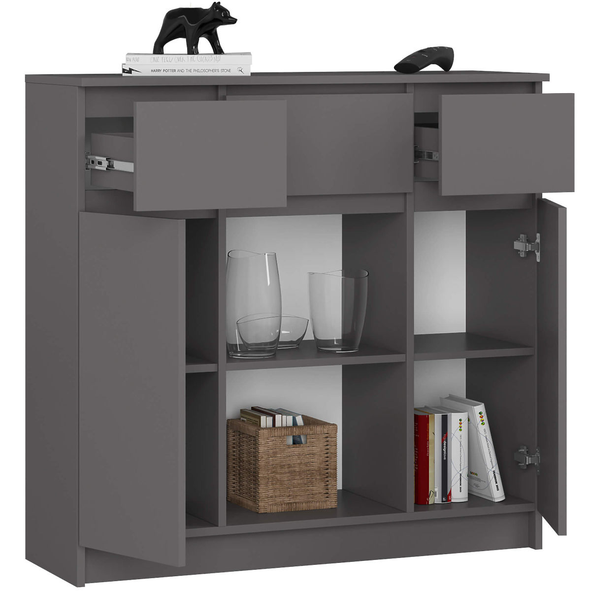 Komoda s tri ladice i dvije preklopne vrata, grafit siva. .. više