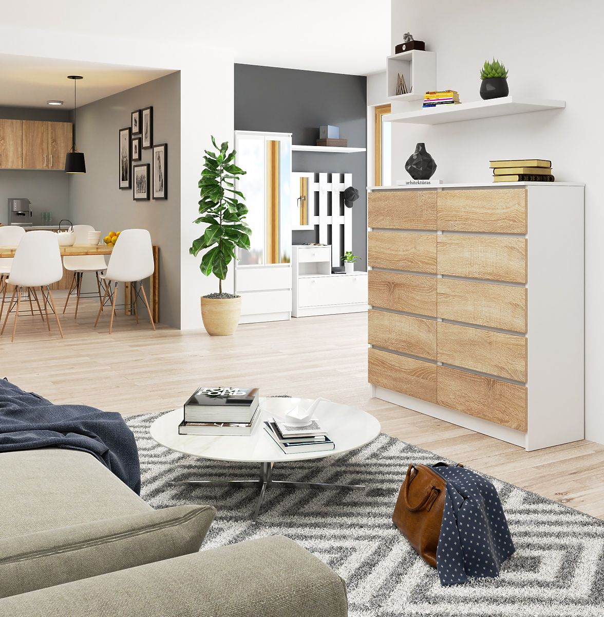 Komode su funkcionalan namještaj bez kojeg je teško zamisliti stanovanje. Omogućuju organiziranje tekstila i drugih predmeta. Ponekad ih ima zaista mnogo. U takvom slučaju vrijedi odabrati bijelu komodu K 120 cm s frontama ladica u boji sonoma - sadrži do 10 ladica, što pruža mnogo slobodnog prostora za korištenje. Najbolje ju je smjestiti u dnevni boravak, spavaću sobu ili predsoblje.