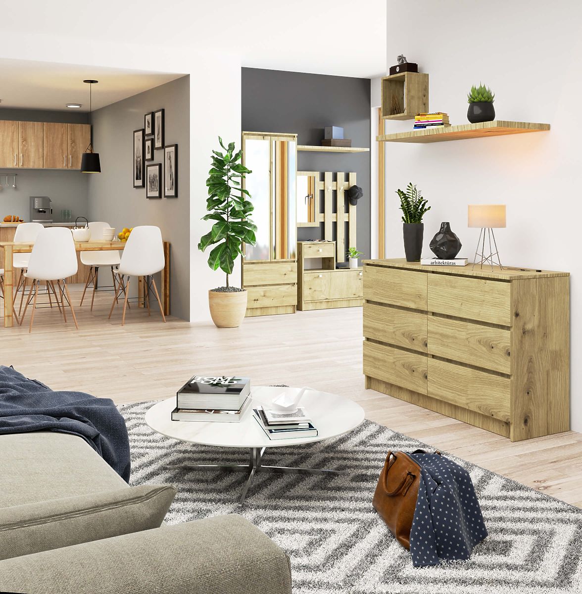 Komoda s 6 ladica od laminirane ploče u boji hrasta Artisan. .. više