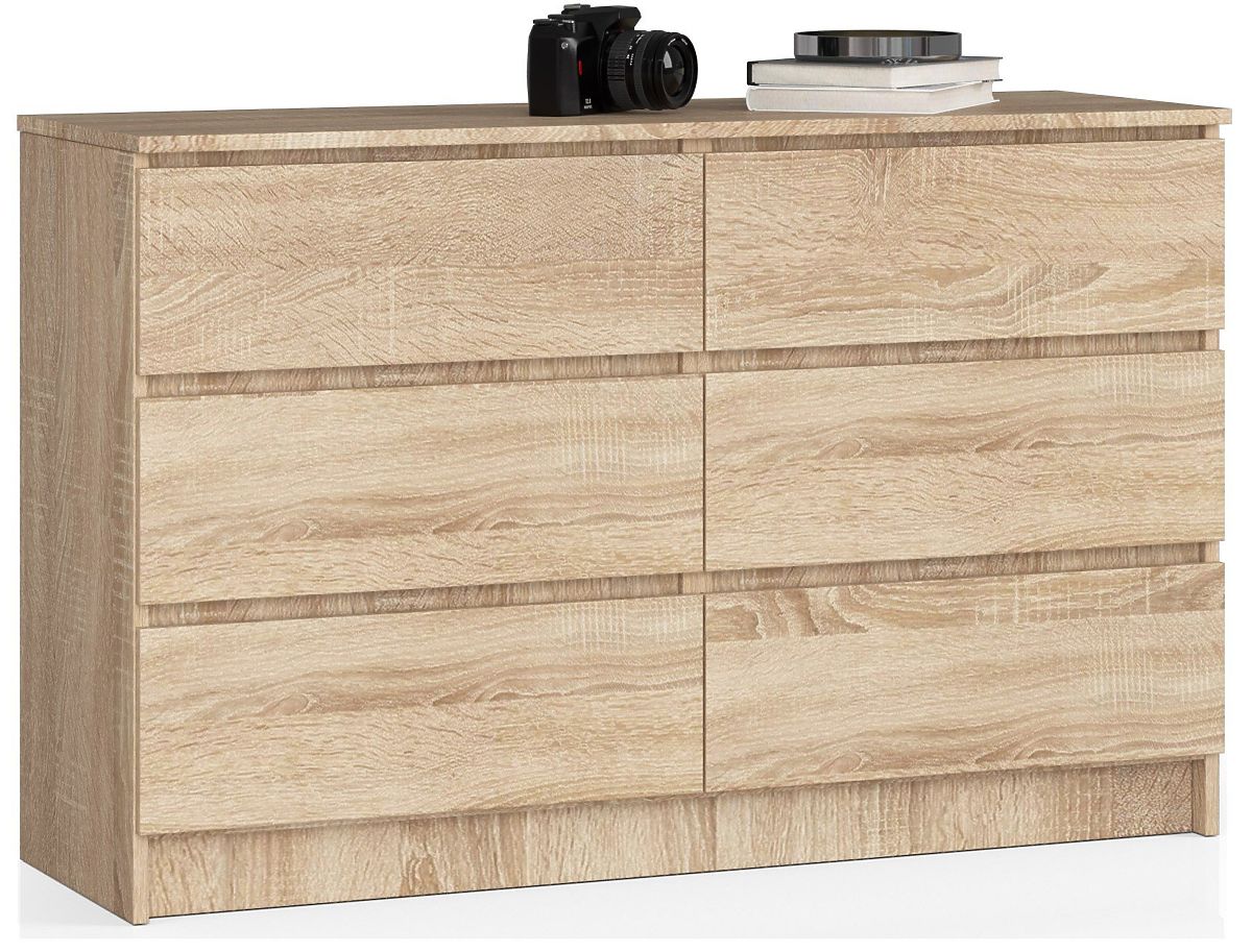 Ako tražite iznimno prostran, ali elegantan komad namještaja, komoda K120 iz naše ponude je izvrsno rješenje! Izrađena od visokokvalitetne laminirane ploče i opremljena s čak 6 ladica, komoda je idealan izbor za spavaću sobu, dnevni boravak, hodnik ili ured. Svoj elegantan izgled duguje ne samo ukusnoj i funkcionalnoj konstrukciji, već i modernoj boji hrast sonoma.