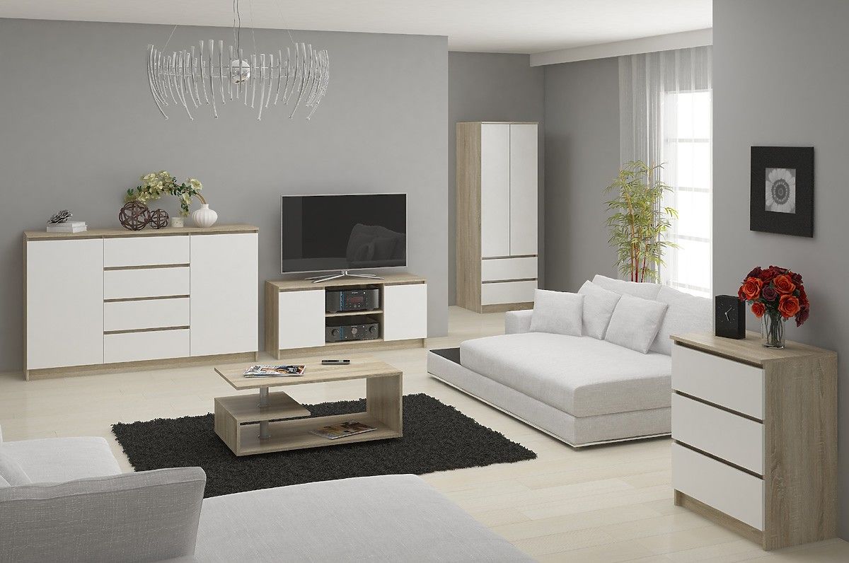Ako tražite odgovarajući namještaj kako za ured, tako i za stambeni prostor, koji će pomoći u pohranjivanju velike količine potrebnih stvari, preporučujemo da se pobliže upoznate s našom ponudom. Nudimo komodu K140 sastavljenu od četiri ladice, dva zatvorena ormarića i također dugu ploču duljine 140 centimetara. Praktičan, moderno stiliziran i cjenovno atraktivan proizvod zasigurno će oduševiti ljubitelje jednostavnih, ali elegantnih rješenja. Komoda je izrađena od kvalitetnih, otpornih na ogrebotine i čvrstih materijala vrlo pažljivim načinom. Kombinira modernu boju, koja je spoj bijele i hrasta sonoma. Preporučujemo za kupnju, kao i za upoznavanje s ostalim elementima opreme dostupnim u okviru ove kolekcije.